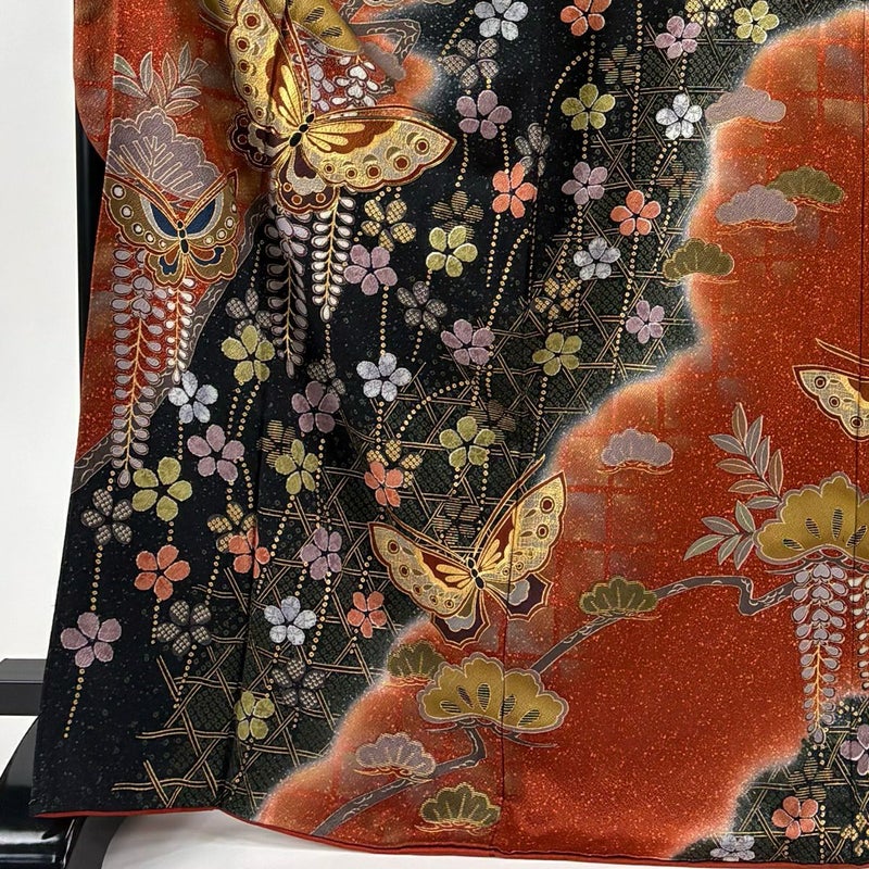 【振袖】 赤系 赤茶 秀品 A 約160cm~約169cm 裄丈69cm以上 (L)size 袖丈91cm以上 9990-29990 美品 二万以下