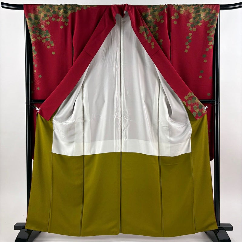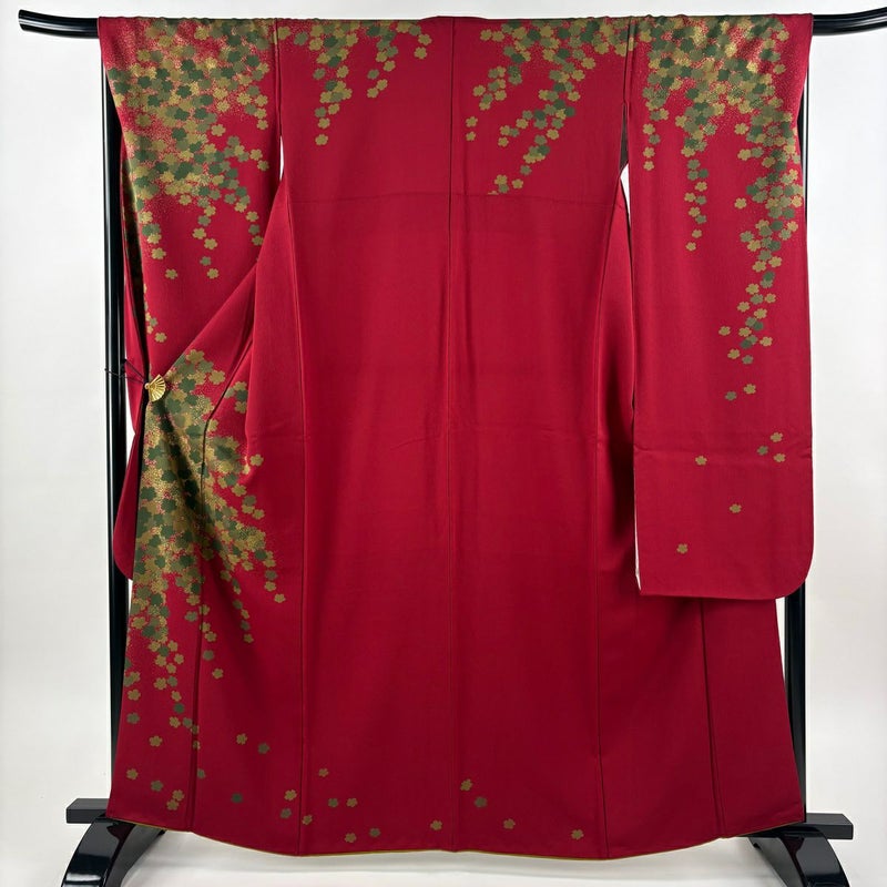 【振袖】 赤系 えんじ色 秀品 A 約160cm~約169cm 裄丈67cm-68cm (L)size 袖丈91cm以上 9990-29990 美品 二万以下