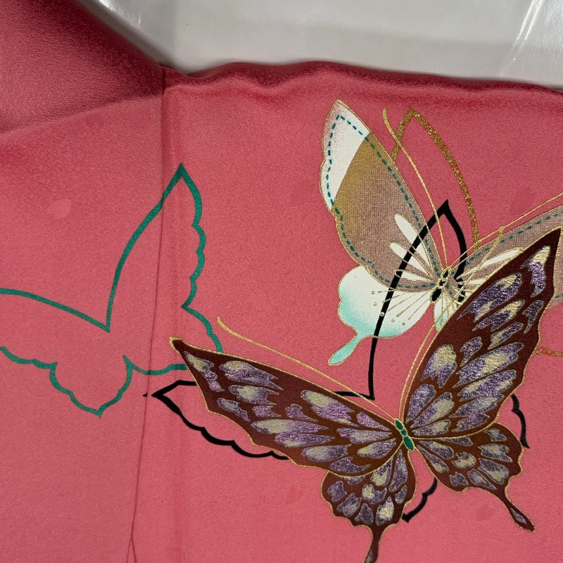 【振袖】 赤系 ピンク 秀品 B 約150cm~約159cm 裄丈66cm (M)size 袖丈91cm以上 7990-9980 二万以下