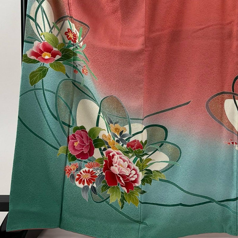 【振袖】 赤系 ピンク 秀品 B 約160cm~約169cm 裄丈67cm-68cm (L)size 袖丈91cm以上 7990-9980 二万以下