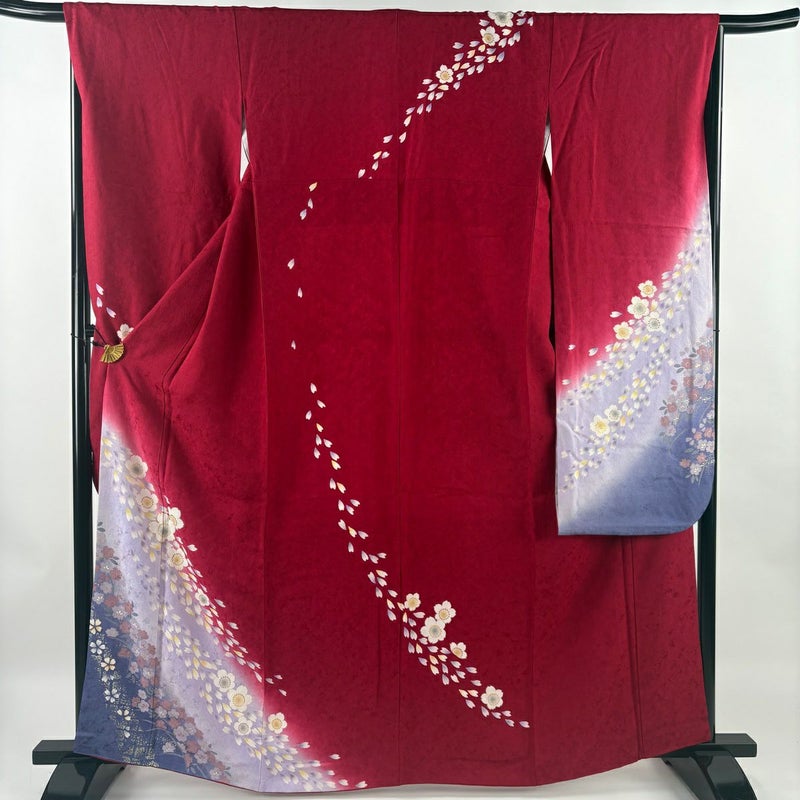 【振袖】 赤系 赤 秀品 B 約160cm~約169cm 裄丈67cm-68cm (M)size 袖丈91cm以上 7990-9980 二万以下