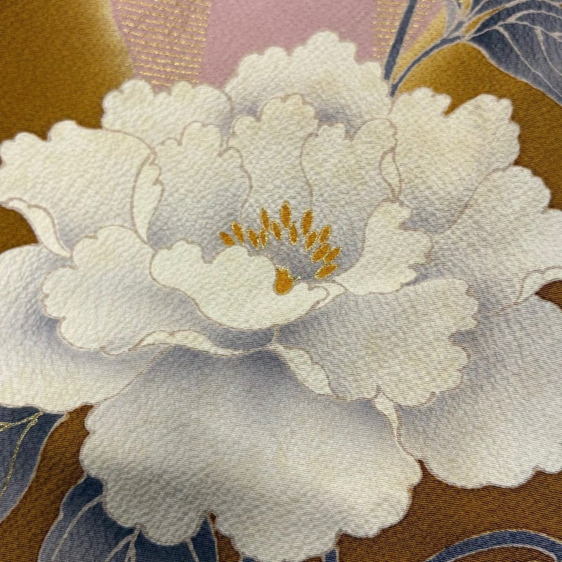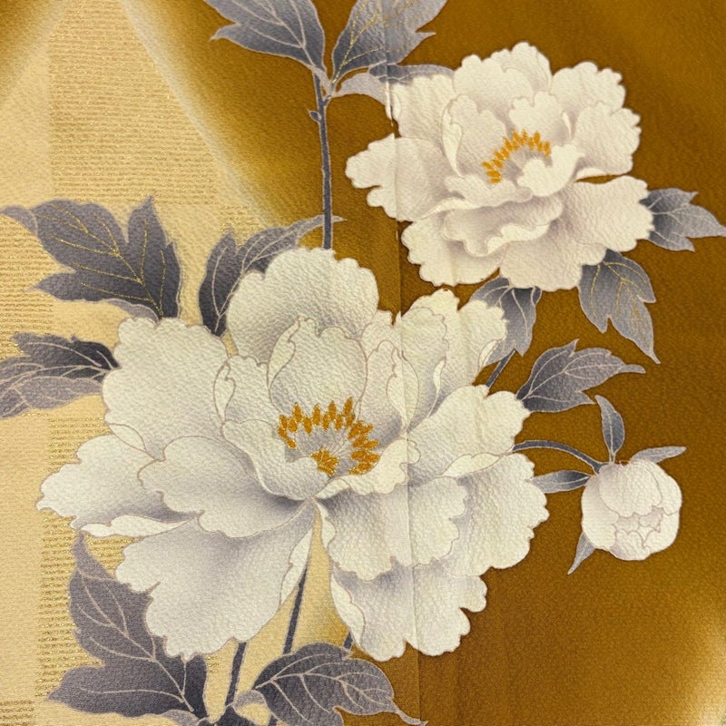 【振袖】 黄色系 黄土色 秀品 C 約160cm~約169cm 裄丈63cm-64cm (S)size 袖丈91cm以上 7990-9980 二万以下
