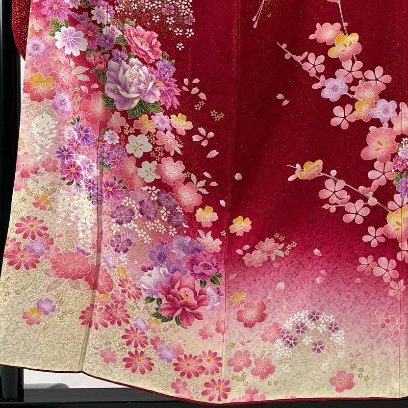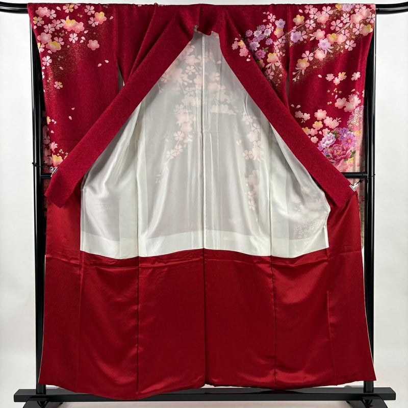 【振袖】 赤系 赤 秀品 A 約150cm~約159cm 裄丈67cm-68cm (M)size 袖丈91cm以上 9990-29990 美品 二万以下
