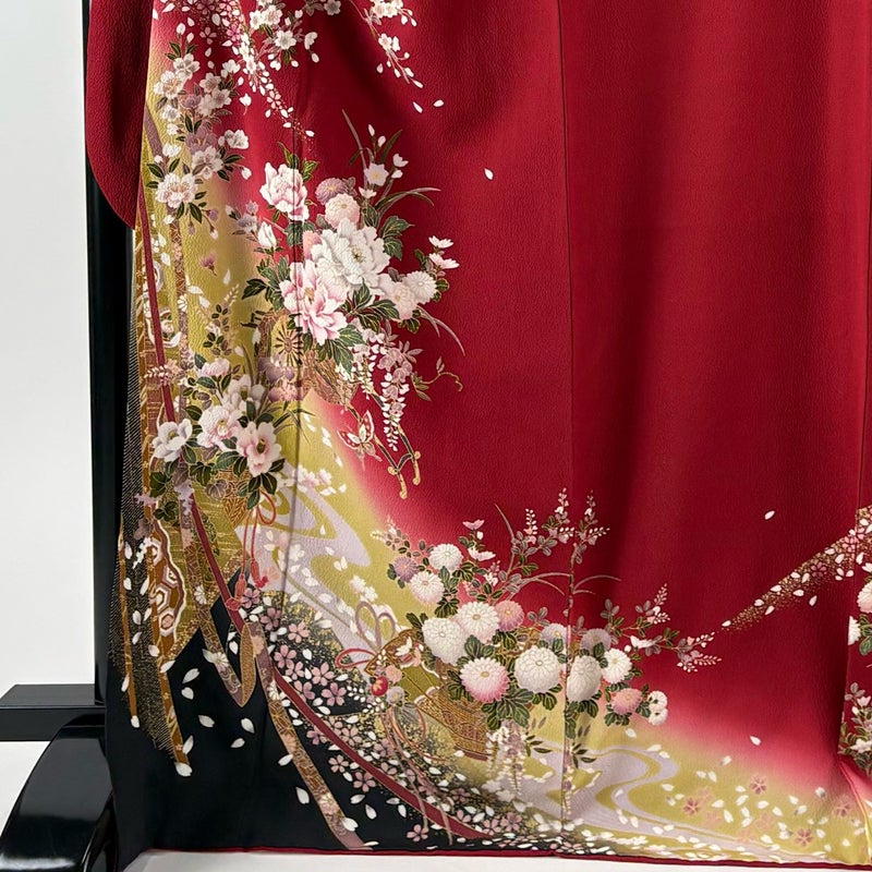 【振袖】 赤系 赤 秀品 C 約170cm~約179cm 裄丈69cm以上 (L)size 袖丈91cm以上 7990-9980 二万以下