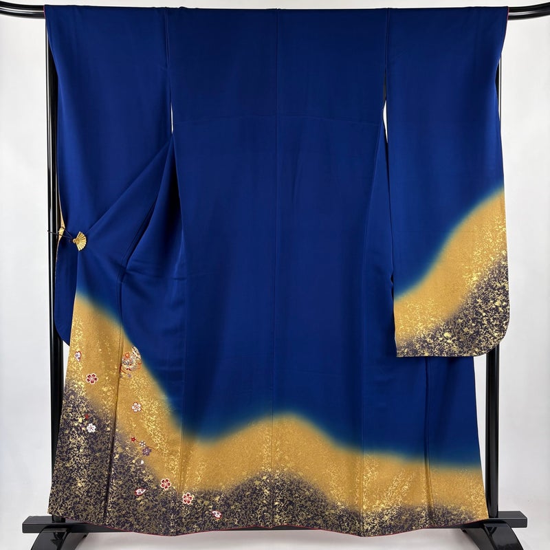 【振袖】 青系 紺色 秀品 B 約150cm~約159cm 裄丈67cm-68cm (L)size 袖丈91cm以上 7990-9980 二万以下