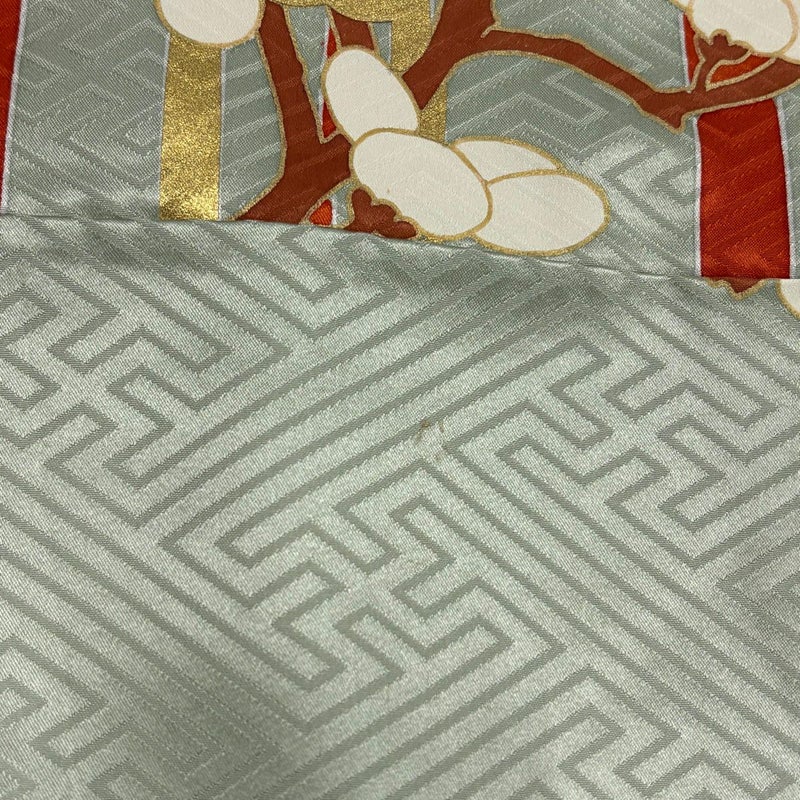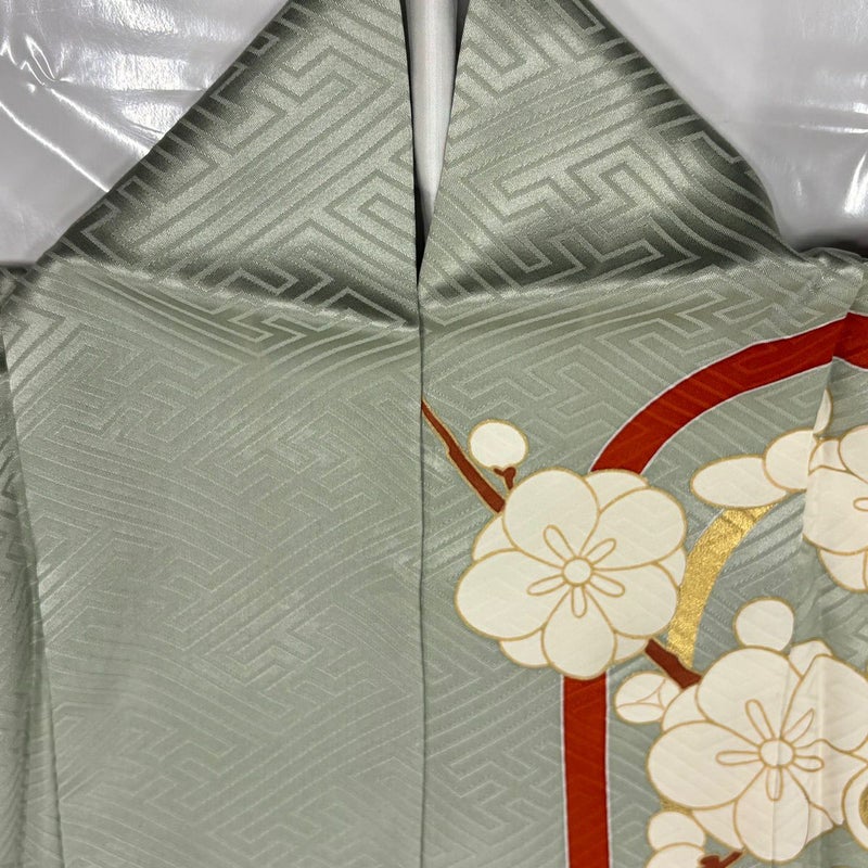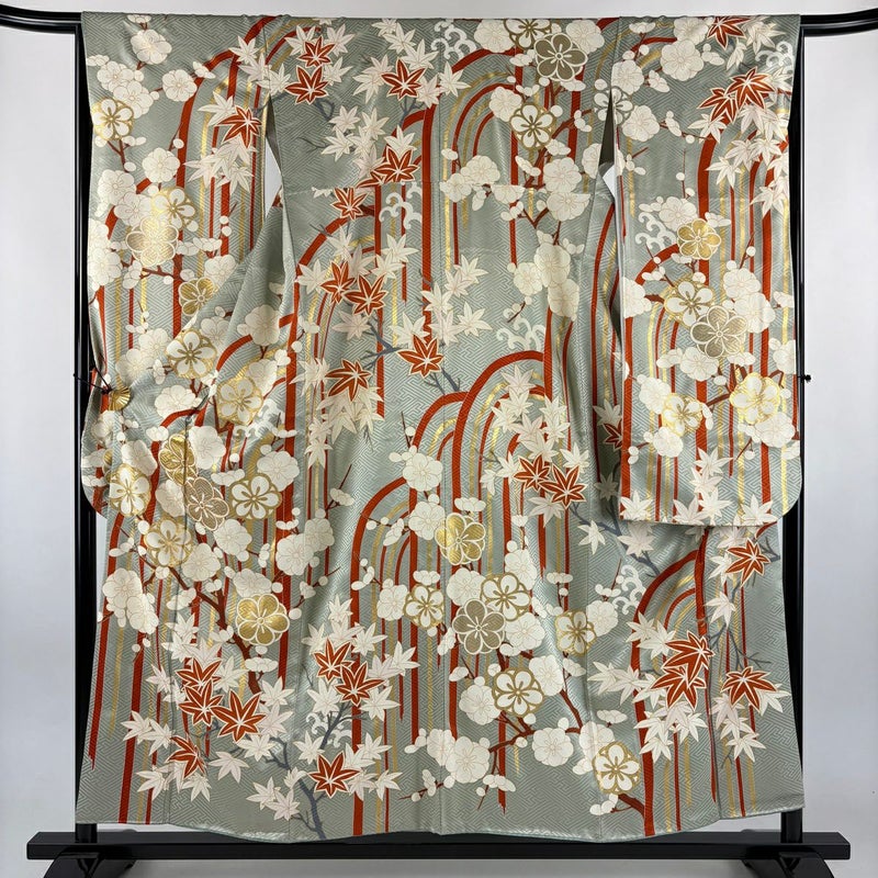【振袖】 灰色系 灰緑 秀品 B 約150cm~約159cm 裄丈65cm (M)size 袖丈91cm以上 7990-9980 二万以下