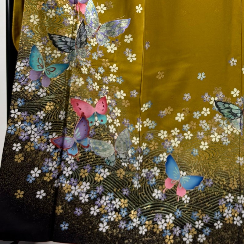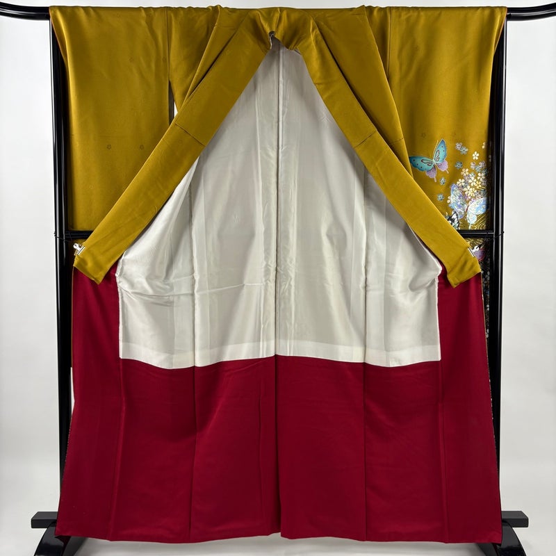 【振袖】 黄色系 黄土色 秀品 C 約160cm~約169cm 裄丈67cm-68cm (M)size 袖丈91cm以上 7990-9980 二万以下