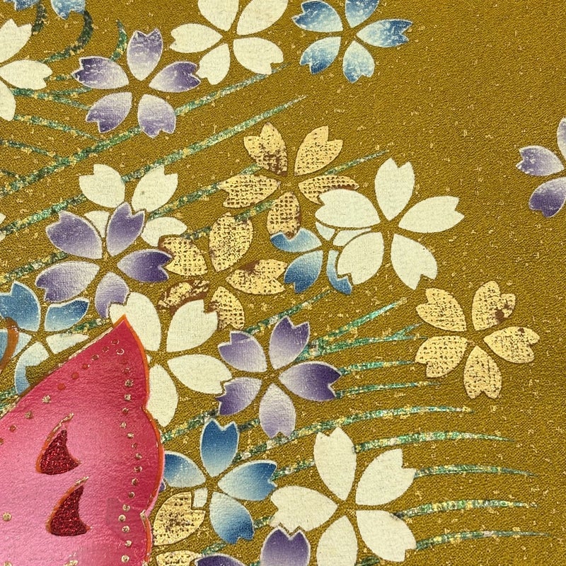 【着物ランク】秀品 【素材】正絹 【身丈】約163cm 【裄丈】約67cm 【袖丈】約111.5cm 【袖幅】約34.5cm 【前幅】約25cm 【後幅】約30cm 【サイズ】M 【着物仕立て】袷 【着用時期】10~5月 【状態ランク】ランクC 【着物着用シーン】成人式、謝恩会