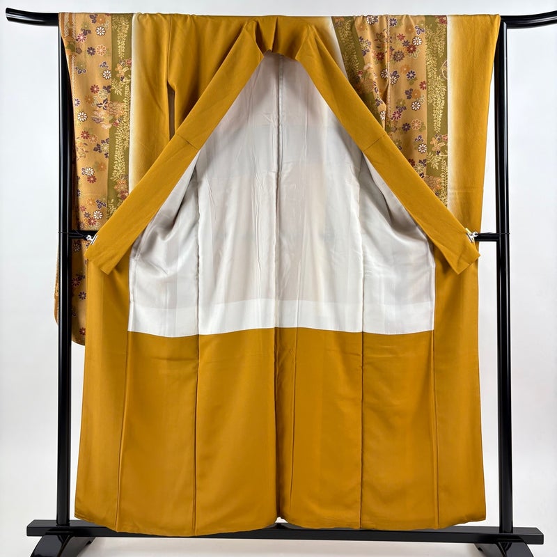 【振袖】 黄色系 山吹茶色 秀品 B 約150cm~約159cm 裄丈66cm (M)size 袖丈91cm以上 7990-9980 二万以下