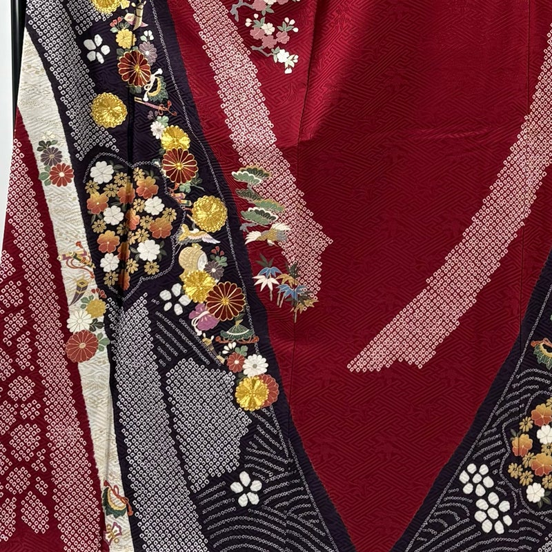 【振袖】 赤系 赤 秀品 C 約160cm~約169cm 裄丈67cm-68cm (M)size 袖丈91cm以上 7990-9980 二万以下