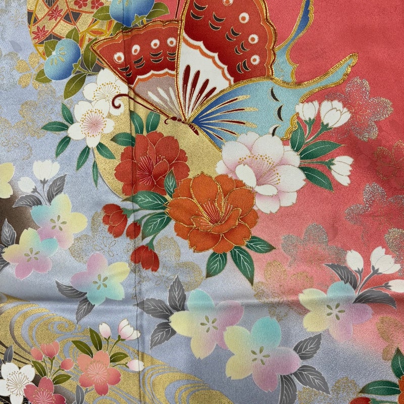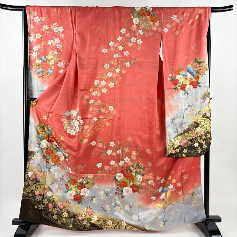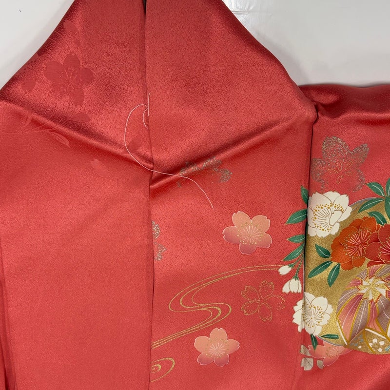 【振袖】 赤系 サーモンピンク 秀品 B 約160cm~約169cm 裄丈65cm (M)size 袖丈91cm以上 7990-9980 二万以下