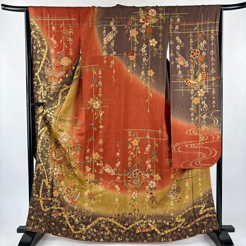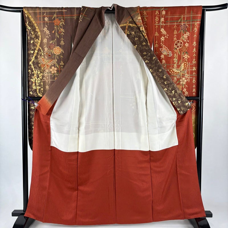 【振袖】 赤系 赤茶 秀品 B 約160cm~約169cm 裄丈65cm (M)size 袖丈91cm以上 7990-9980 二万以下