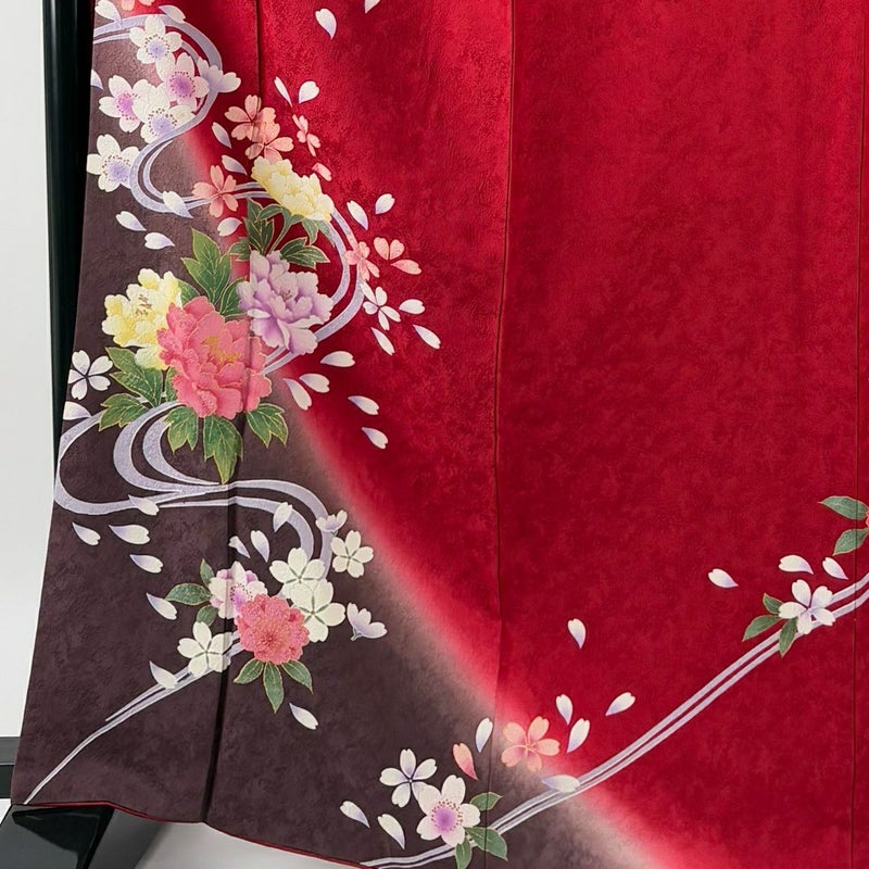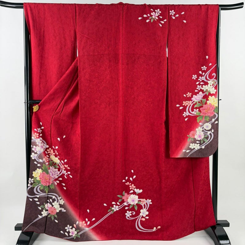 【振袖】 赤系 赤 秀品 B 約160cm~約169cm 裄丈67cm-68cm (M)size 袖丈91cm以上 7990-9980 二万以下