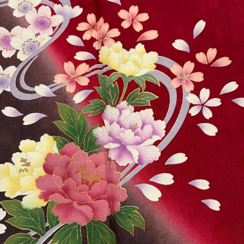 【着物ランク】秀品 【素材】正絹 【身丈】約166cm 【裄丈】約67cm 【袖丈】約106.5cm 【袖幅】約35cm 【前幅】約23cm 【後幅】約30cm 【サイズ】M 【着物仕立て】袷 【着用時期】10~5月 【状態ランク】ランクB 【着物着用シーン】成人式、謝恩会