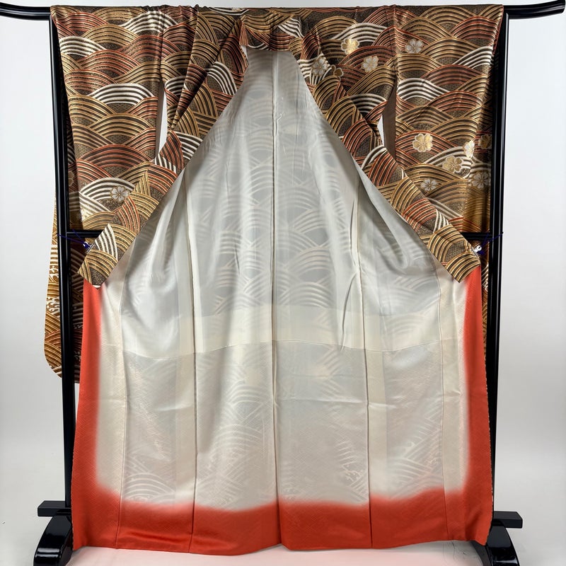【着物ランク】秀品 【素材】正絹 【身丈】約167.5cm 【裄丈】約66cm 【袖丈】約116cm 【袖幅】約35cm 【前幅】約23.5cm 【後幅】約30cm 【サイズ】M 【着物仕立て】袷 【着用時期】10~5月 【状態ランク】ランクB 【着物着用シーン】成人式、謝恩会