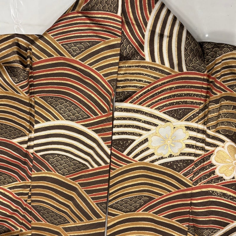 【振袖】 茶系 焦茶色 秀品 B 約160cm~約169cm 裄丈66cm (M)size 袖丈91cm以上 7990-9980 二万以下