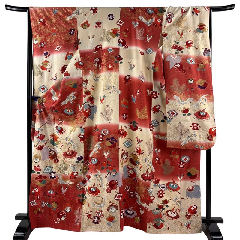【着物ランク】秀品 【素材】正絹 【身丈】約166cm 【裄丈】約65cm 【袖丈】約104cm 【袖幅】約33cm 【前幅】約25cm 【後幅】約30cm 【サイズ】M 【着物仕立て】袷 【着用時期】10~5月 【状態ランク】ランクA 【着物着用シーン】成人式、謝恩会