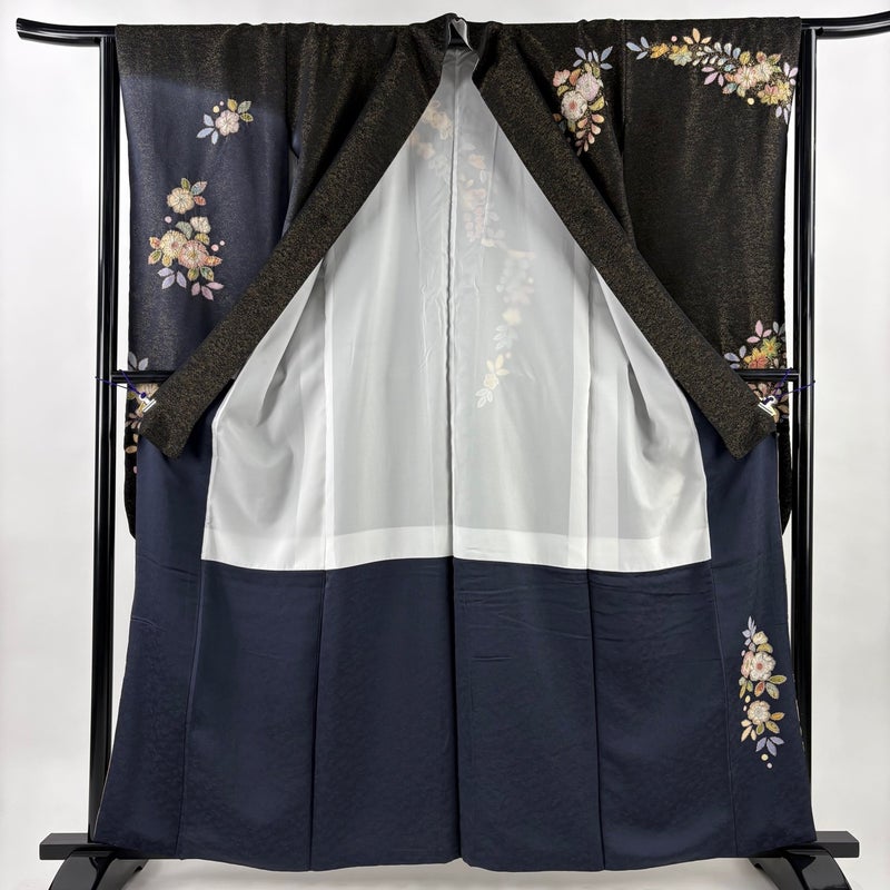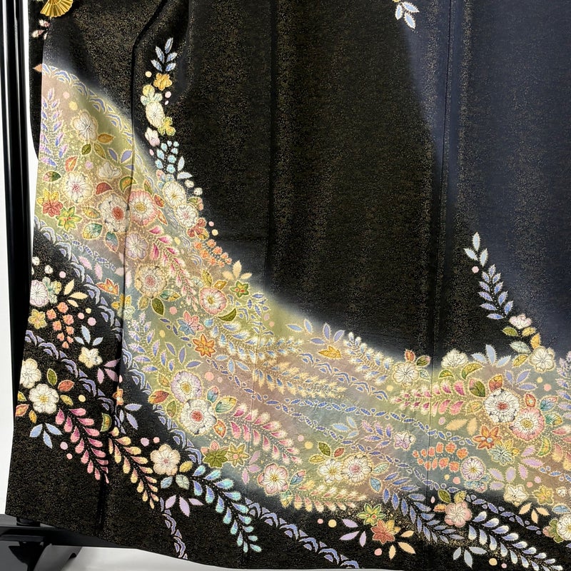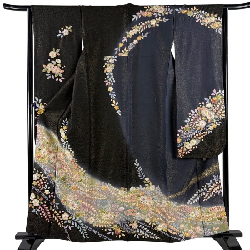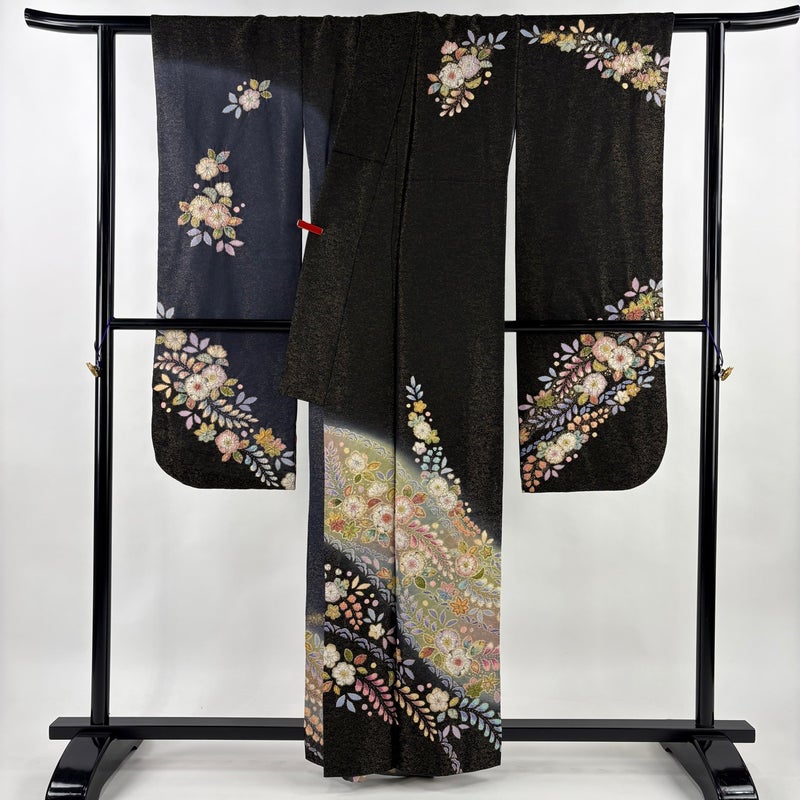 【振袖】 黒系 黒 逸品 A 約160cm~約169cm 裄丈63cm-64cm (M)size 袖丈91cm以上 30000- 美品 五万以下