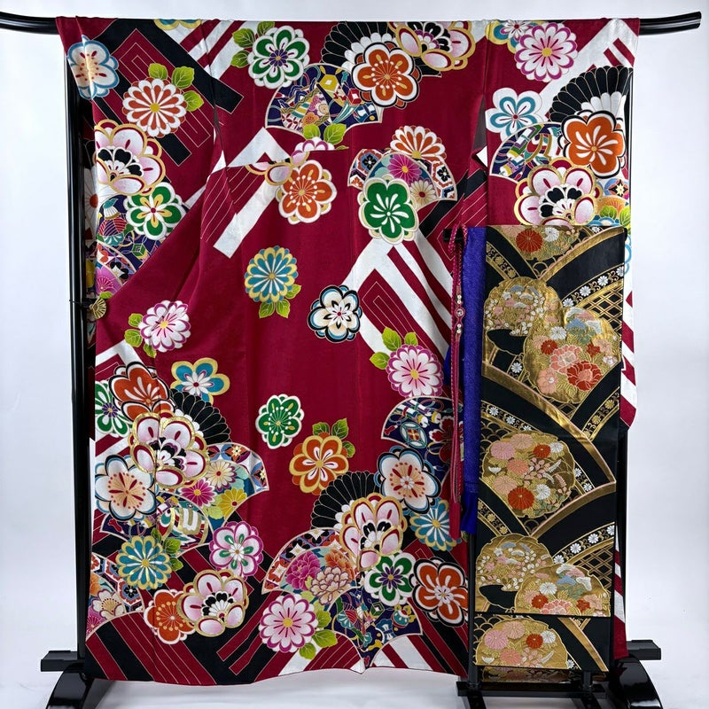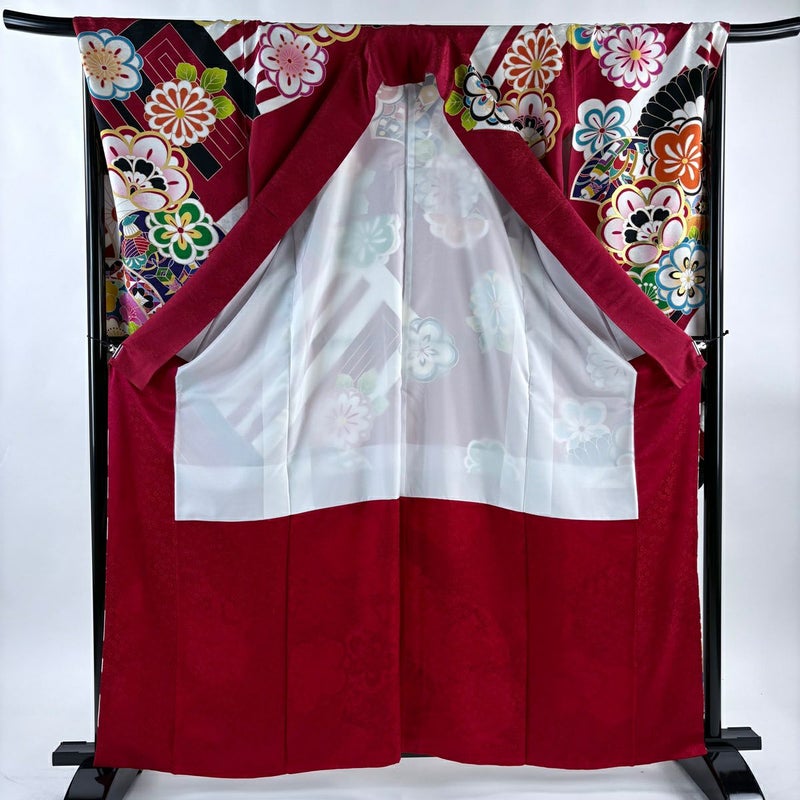 【振袖】 赤系 赤 名品 B 約160cm~約169cm 裄丈67cm-68cm (L)size 袖丈91cm以上 9990-29990 五万以下