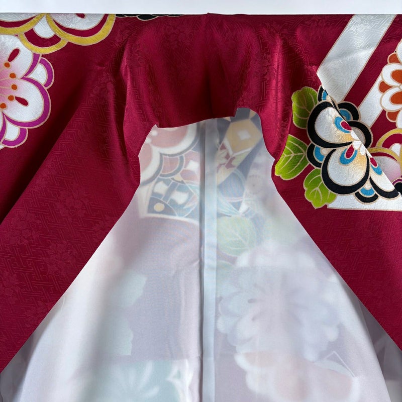 【着物ランク】名品 【素材】正絹 【身丈】約162.5cm 【裄丈】約68.5cm 【袖丈】約104.5cm 【袖幅】約34.5cm 【前幅】約24cm 【後幅】約29.5cm 【サイズ】L 【着物仕立て】袷 【着用時期】10~5月 【帯丈2】約432cm 【帯幅2】約31cm 【状態ランク】ランクB 【着物着用シーン】成人式、謝恩会