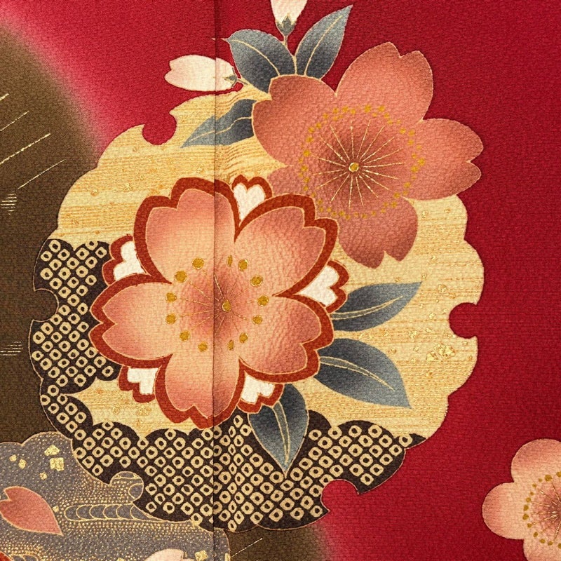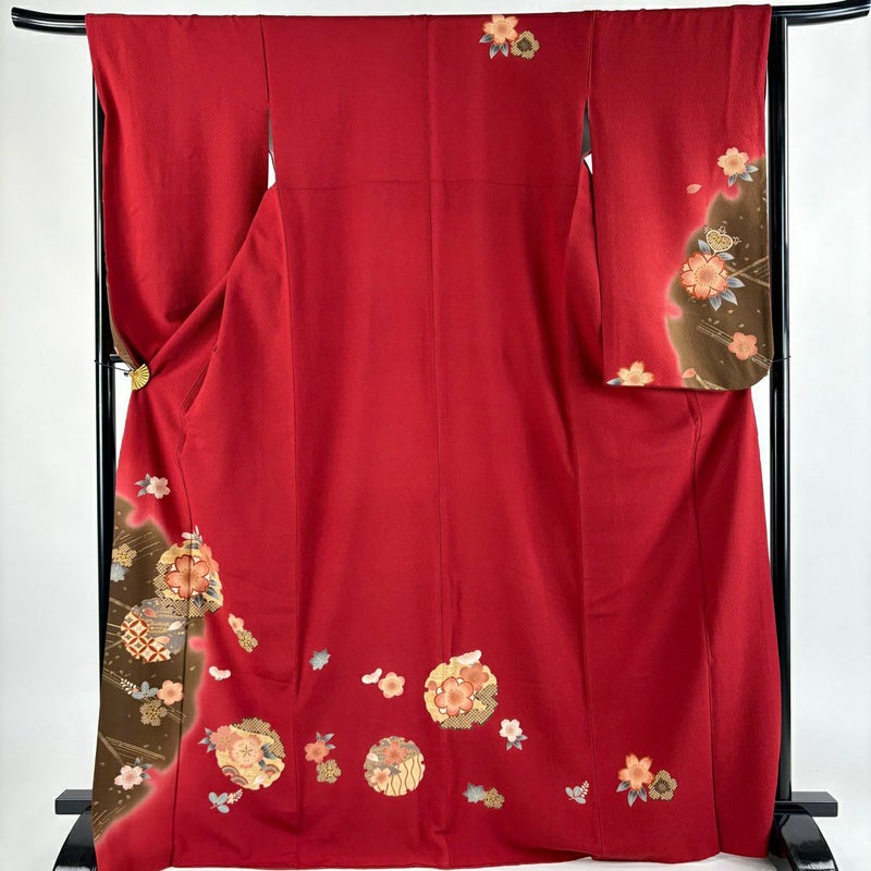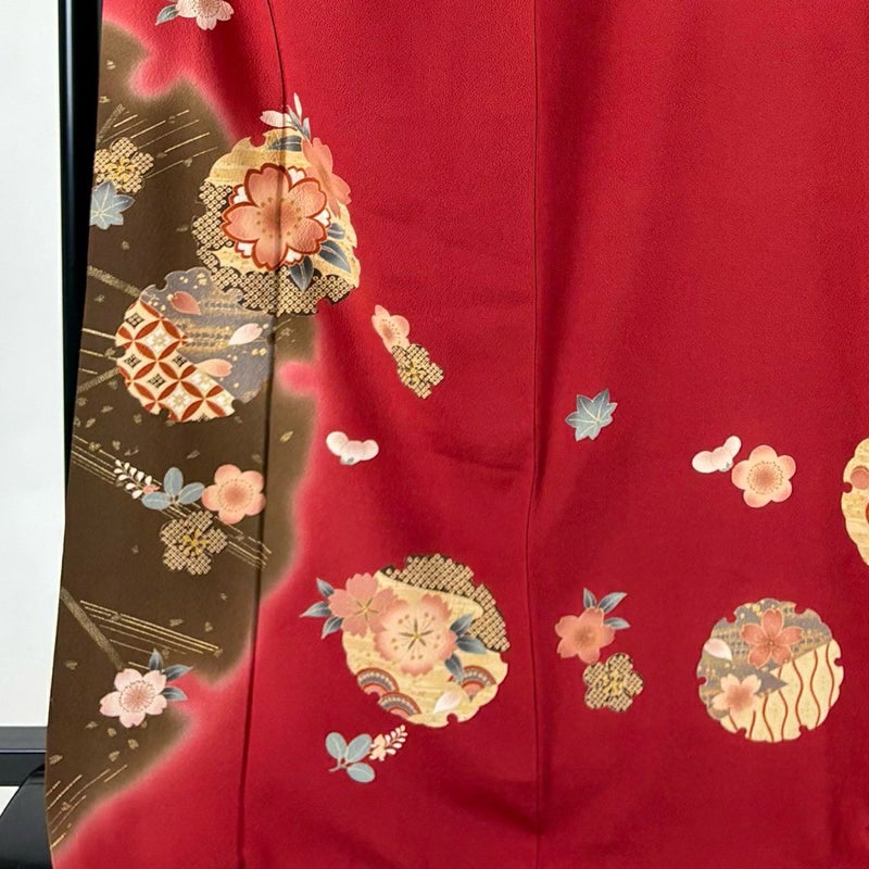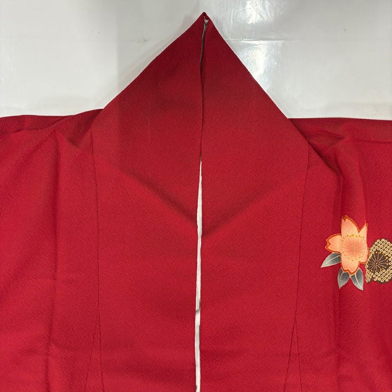 【振袖】 赤系 赤 秀品 B 約160cm~約169cm 裄丈65cm (M)size 袖丈61cm~90cm 7990-9980 二万以下