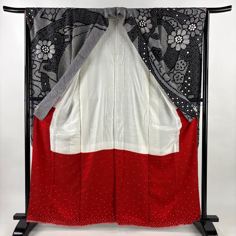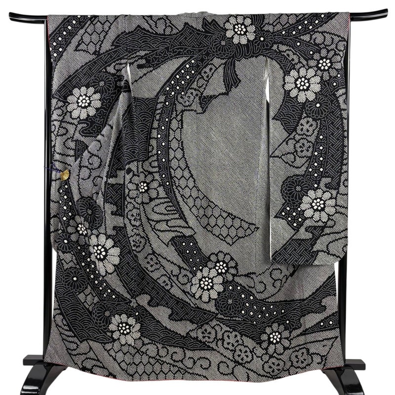 【振袖】 黒系 黒 名品 A 約160cm~約169cm 裄丈67cm-68cm (M)size 袖丈91cm以上 9990-29990 美品 二万以下