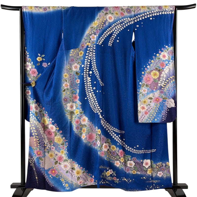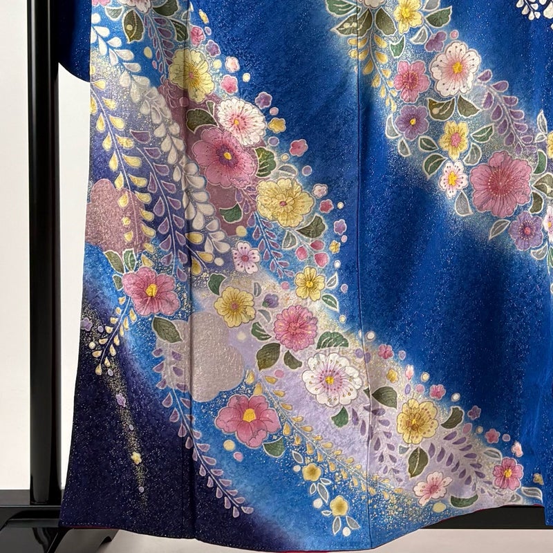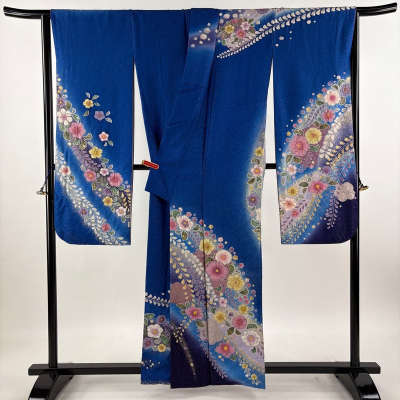 【振袖】 青系 青 逸品 C 約160cm~約169cm 裄丈65cm (M)size 袖丈91cm以上 30000- 五万以下