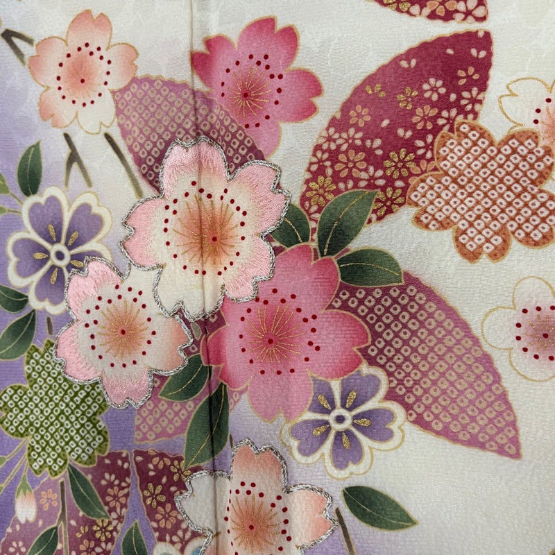 【振袖】 白系 クリーム 名品 B 約160cm~約169cm 裄丈69cm以上 (L)size 袖丈91cm以上 9990-29990 二万以下