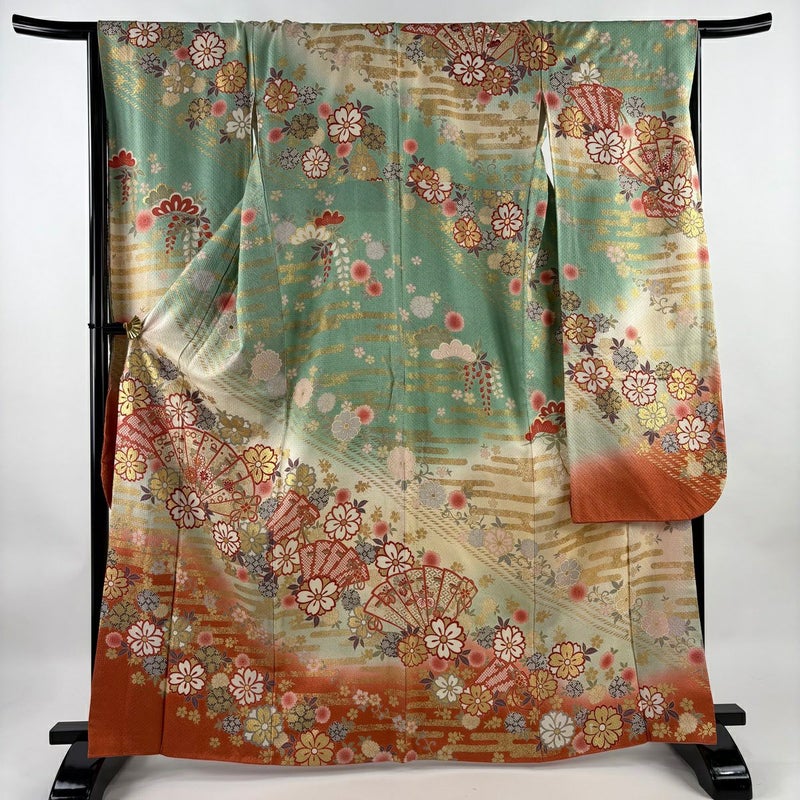 【振袖】 緑系 薄緑 名品 B 約160cm~約169cm 裄丈66cm (M)size 袖丈91cm以上 9990-29990 二万以下