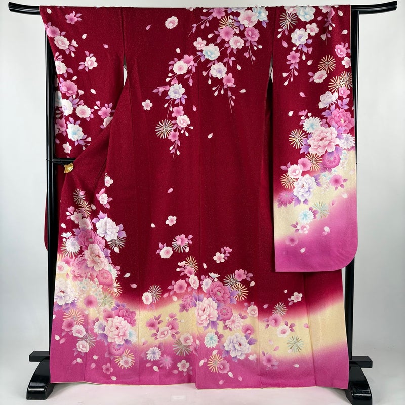 【振袖】 赤系 赤 名品 B 約160cm~約169cm 裄丈69cm以上 (L)size 袖丈91cm以上 9990-29990 二万以下