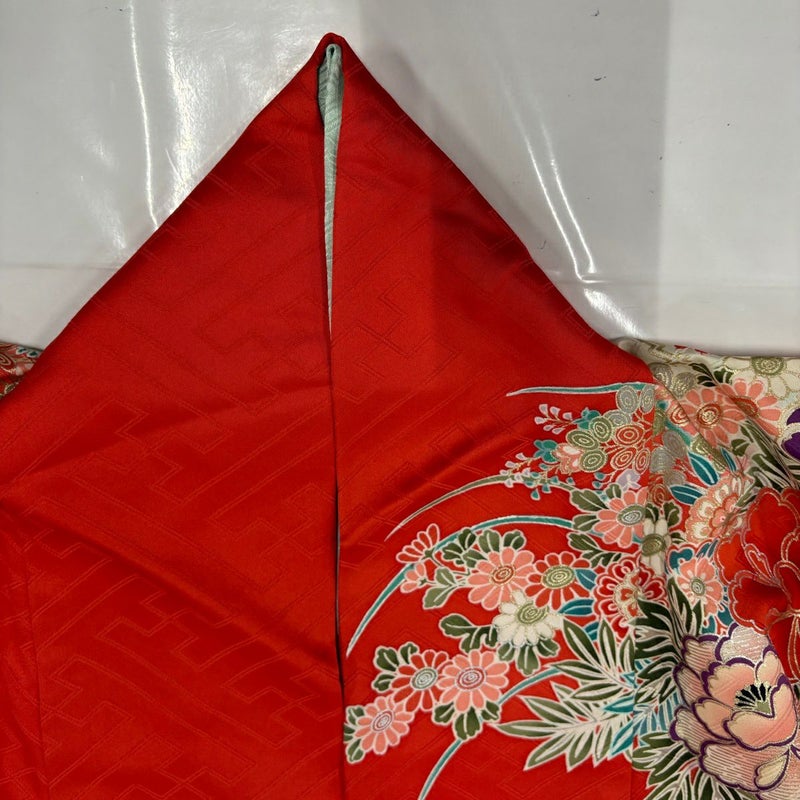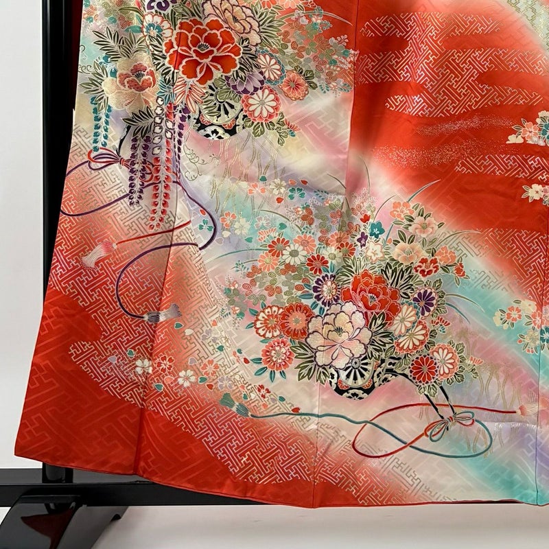 【振袖】 赤系 朱色 優品 A 約160cm~約169cm 裄丈67cm-68cm (M)size 袖丈91cm以上 4000-7980 美品 二万以下