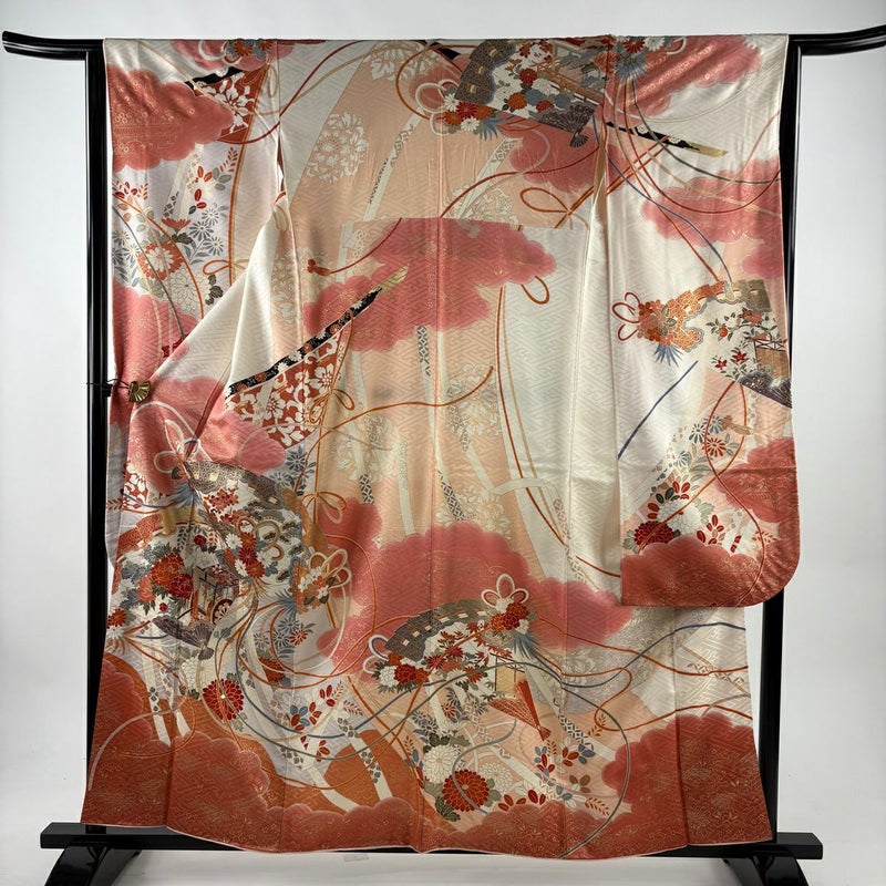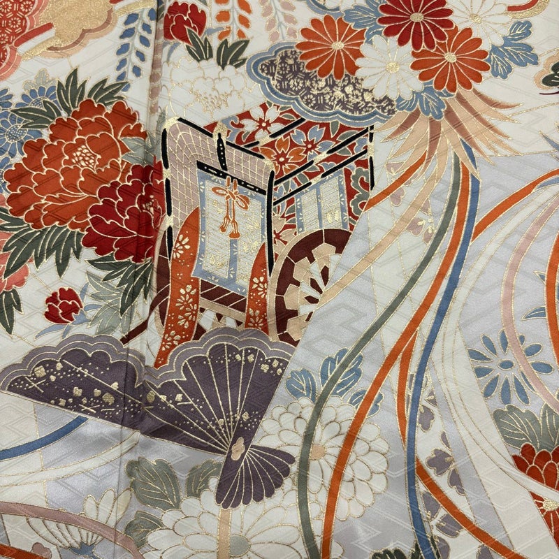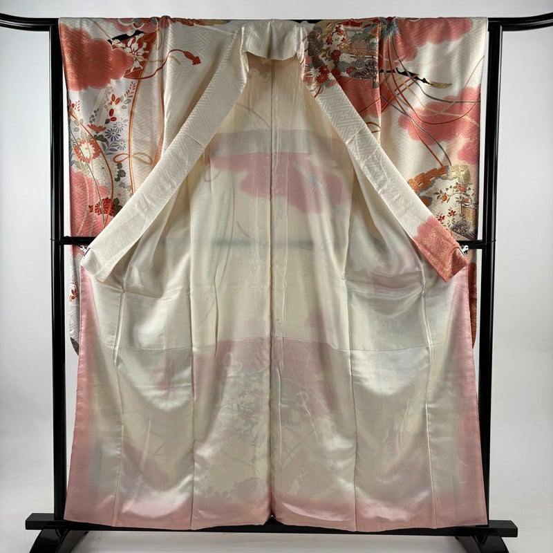 【振袖】 白系 クリーム 優品 A 約150cm~約159cm 裄丈62cm以下 (S)size 袖丈91cm以上 4000-7980 美品 二万以下