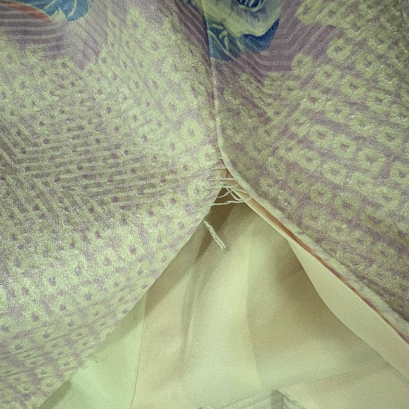 【着物ランク】優品 【素材】正絹 【身丈】約161.5cm 【裄丈】約65cm 【袖丈】約107.5cm 【袖幅】約34.5cm 【前幅】約24.5cm 【後幅】約29.5cm 【サイズ】M 【着物仕立て】袷 【着用時期】10~5月 【状態ランク】ランクB 【着物着用シーン】成人式、謝恩会