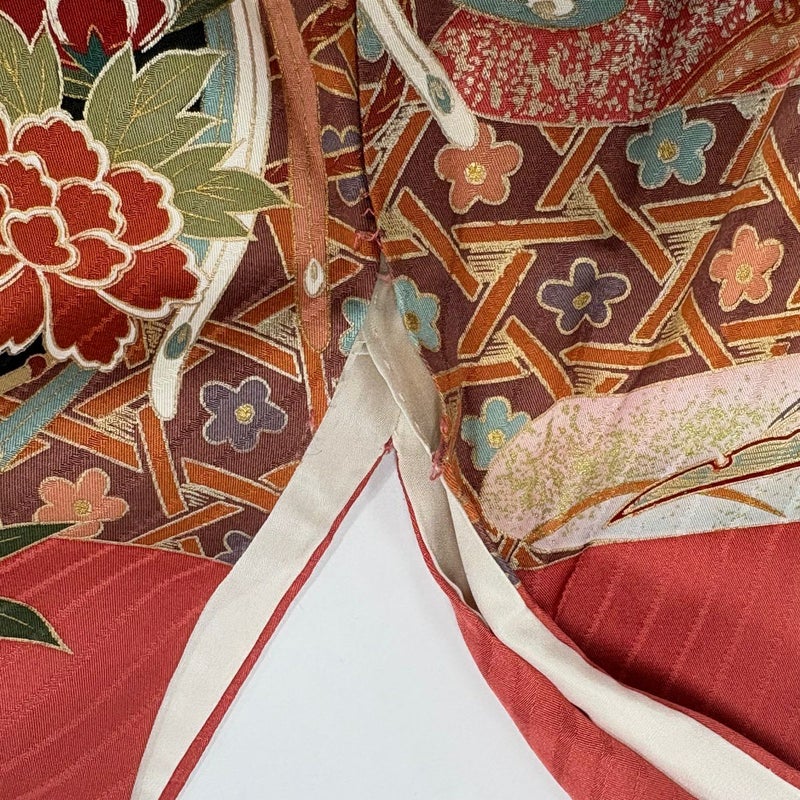 【着物ランク】秀品 【素材】正絹 【身丈】約161.5cm 【裄丈】約65cm 【袖丈】約109cm 【袖幅】約34cm 【前幅】約24.5cm 【後幅】約30.5cm 【サイズ】M 【着物仕立て】袷 【着用時期】10~5月 【状態ランク】ランクC 【着物着用シーン】成人式、謝恩会