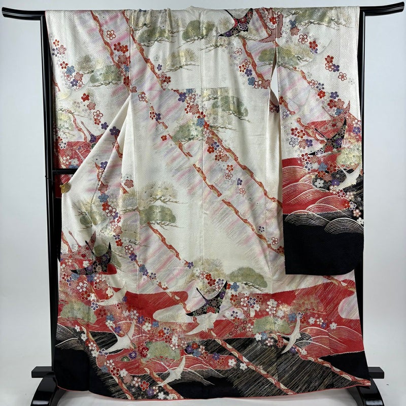【振袖】 白系 クリーム 秀品 C 約160cm~約169cm 裄丈67cm-68cm (L)size 袖丈91cm以上 7990-9980 二万以下