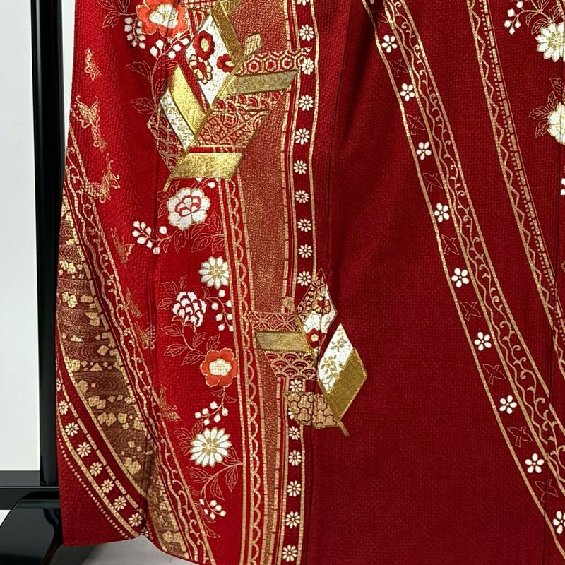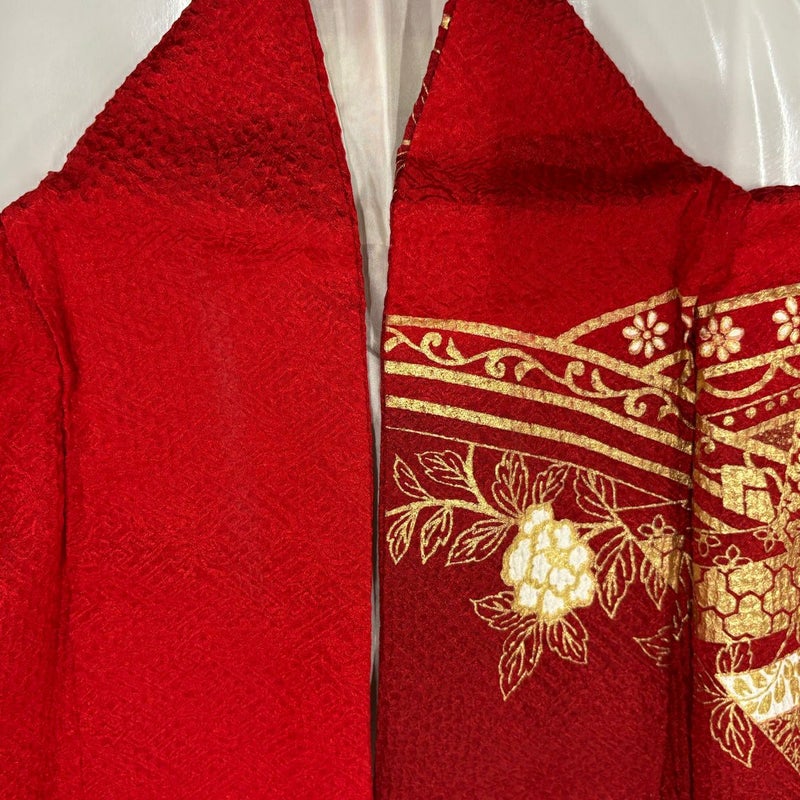 【振袖】 赤系 赤 秀品 C 約160cm~約169cm 裄丈63cm-64cm (M)size 袖丈91cm以上 7990-9980 二万以下