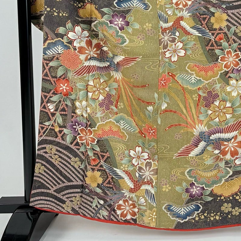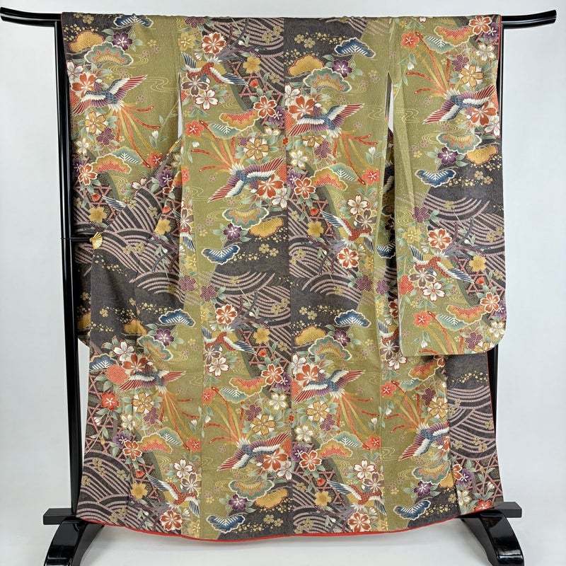 【振袖】 緑系 鶯色 秀品 C 約160cm~約169cm 裄丈65cm (M)size 袖丈91cm以上 7990-9980 二万以下