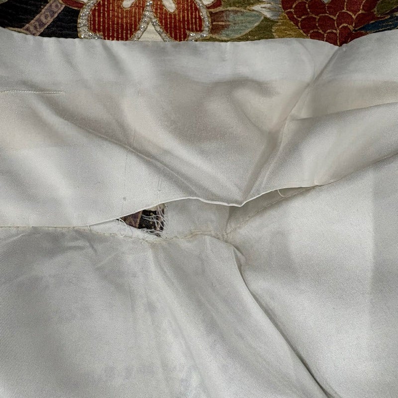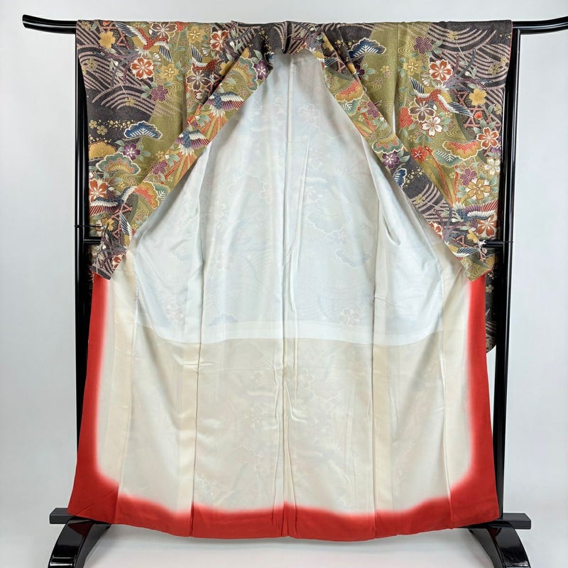 未婚女性の第一礼装としてお使いいただける振袖でございます。 お好みの帯や小物と合わせて晴れの日に相応しい華やかな装いにいかがでしょうか。 ※身丈・裄丈の縫込みの長さは測っておりません。 両袖前後に縫い目のゆるみがございます。 胴裏にシミ、胴裏と八掛にシワ、衿裏にほつれがございます。 ご購入の際はその点ご留意ください。 ※なお、厳しく商品の状態確認を行っておりますが、記載の汚れ以外にも見落とし箇所がある可能性がある旨ご了承いただけますと幸いです。 沢山の商品の中からご覧いただき誠にありがとうございます。
