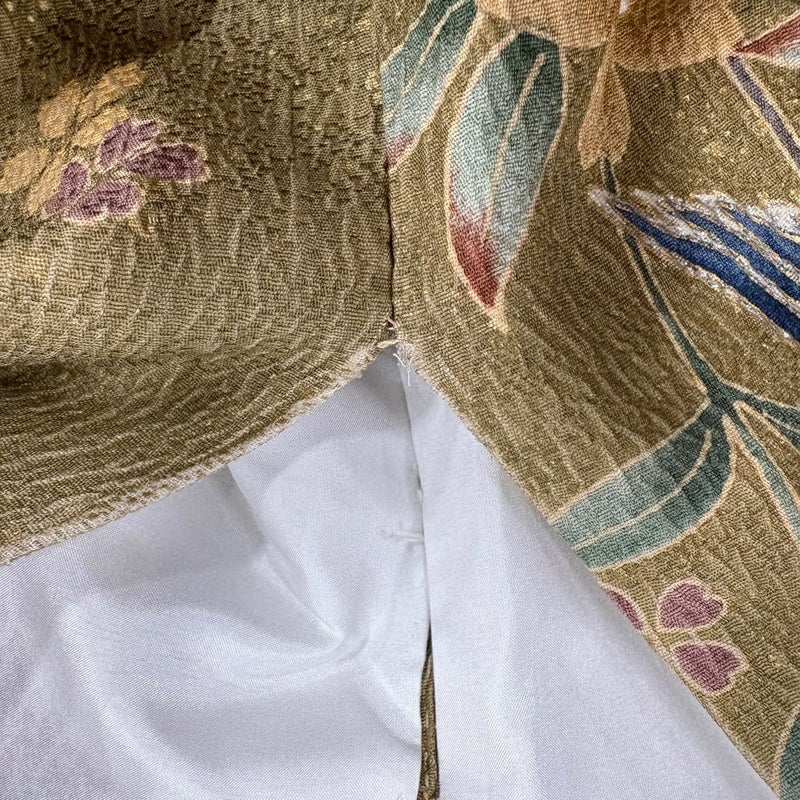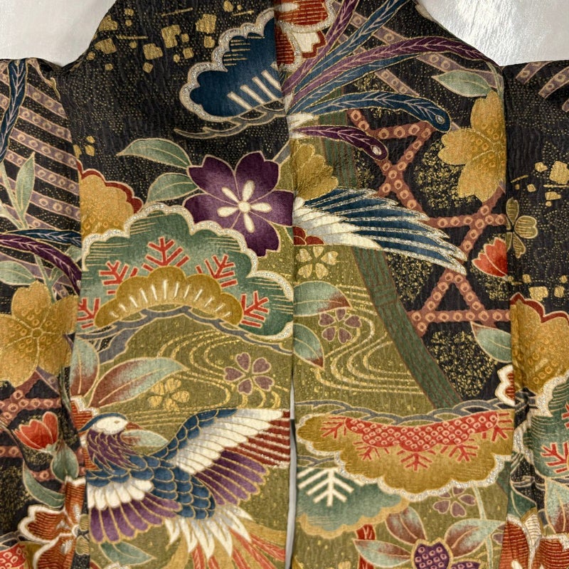 【着物ランク】秀品 【素材】正絹 【身丈】約164cm 【裄丈】約65.5cm 【袖丈】約103.5cm 【袖幅】約34cm 【前幅】約24cm 【後幅】約30cm 【サイズ】M 【着物仕立て】袷 【着用時期】10~5月 【状態ランク】ランクC 【着物着用シーン】成人式、謝恩会