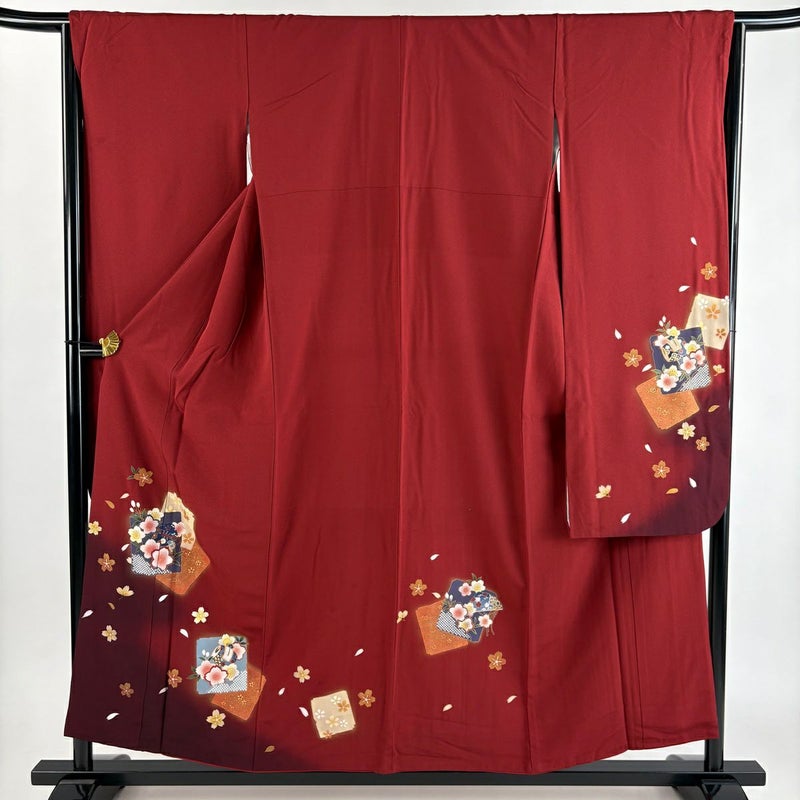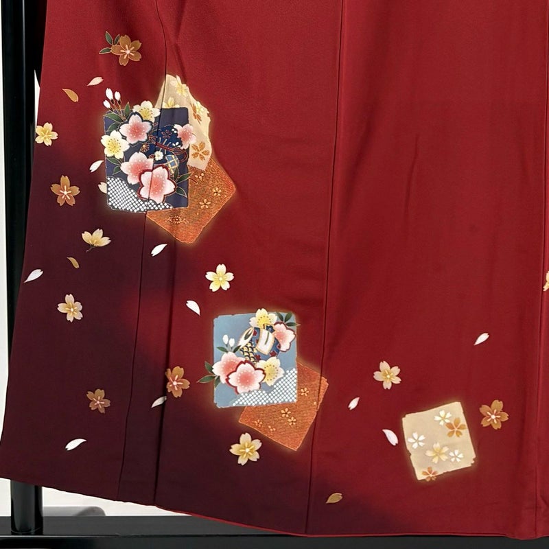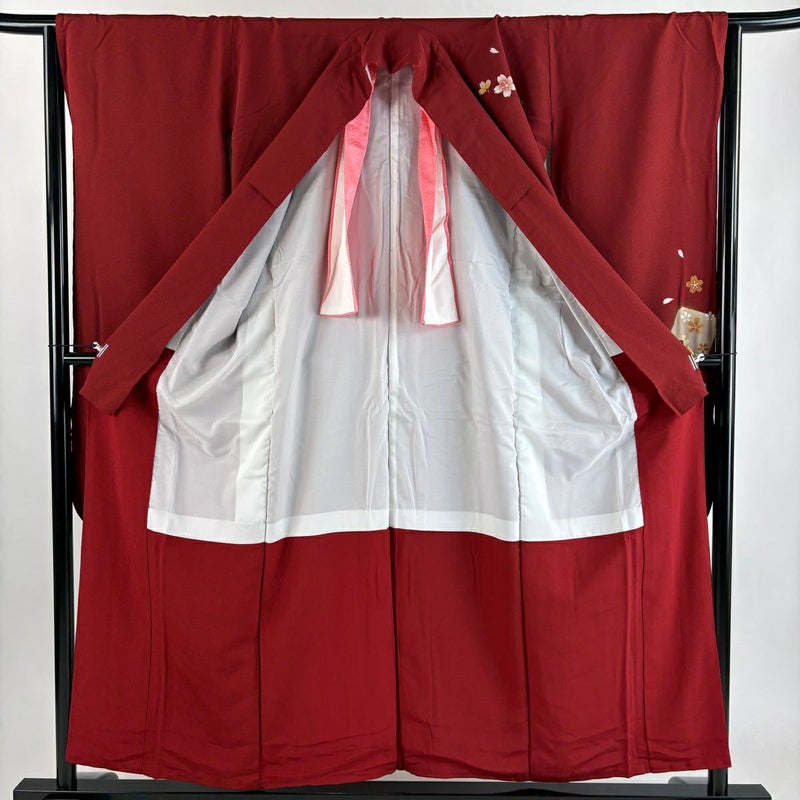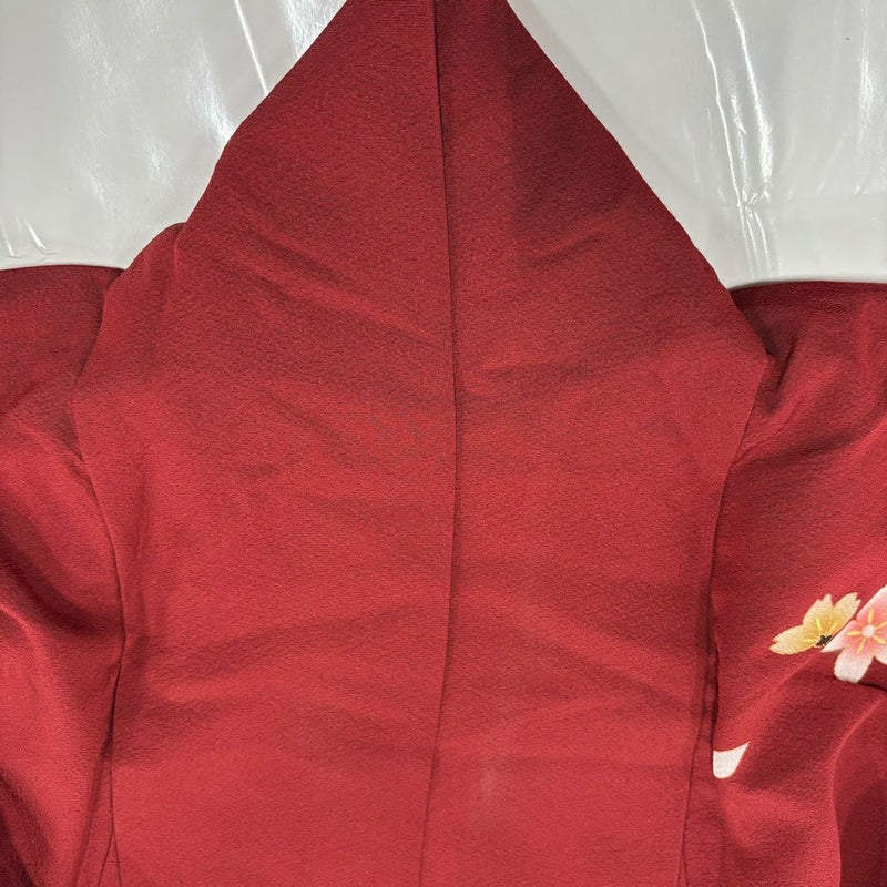 【振袖】 赤系 茜色 秀品 B 約150cm~約159cm 裄丈63cm-64cm (M)size 袖丈91cm以上 7990-9980 二万以下