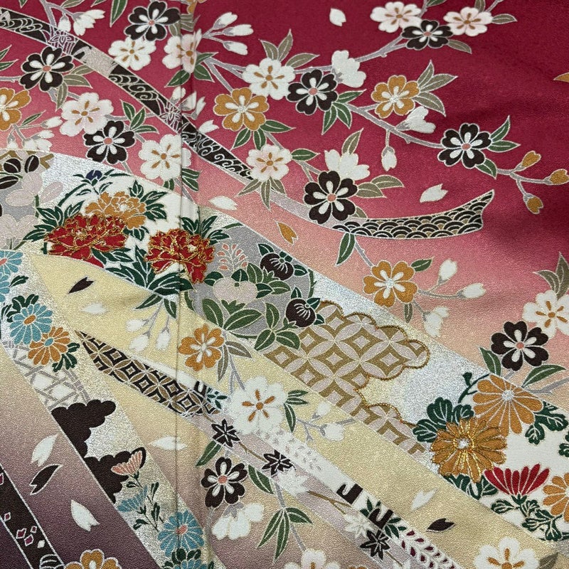 【着物ランク】秀品 【素材】正絹 【身丈】約157cm 【裄丈】約62.5cm 【袖丈】約104.5cm 【袖幅】約32.5cm 【前幅】約24cm 【後幅】約30cm 【サイズ】S 【着物仕立て】袷 【着用時期】10~5月 【状態ランク】ランクA 【着物着用シーン】成人式、謝恩会