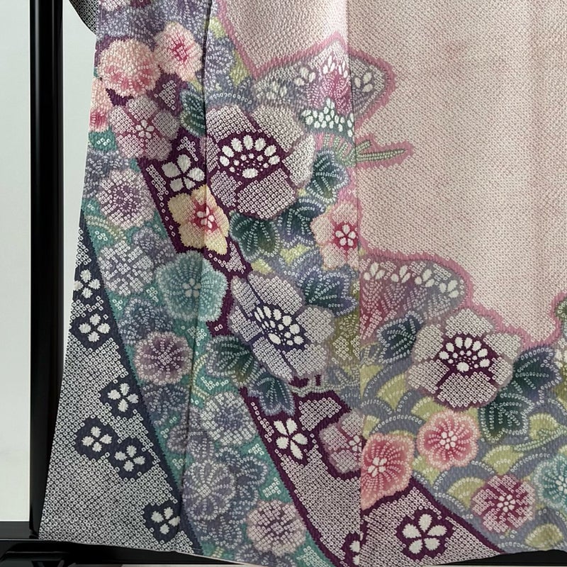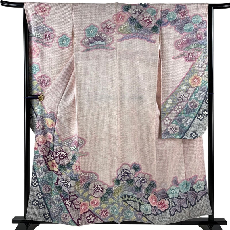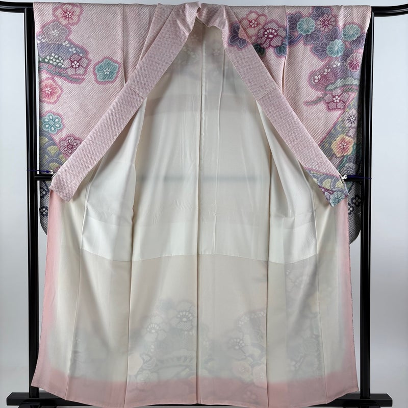 【着物ランク】名品 【素材】正絹 【身丈】約155.5cm 【裄丈】約65cm 【袖丈】約98cm 【袖幅】約34cm 【前幅】約23cm 【後幅】約30cm 【サイズ】M 【着物仕立て】袷 【着用時期】10~5月 【状態ランク】ランクB 【着物着用シーン】成人式、謝恩会