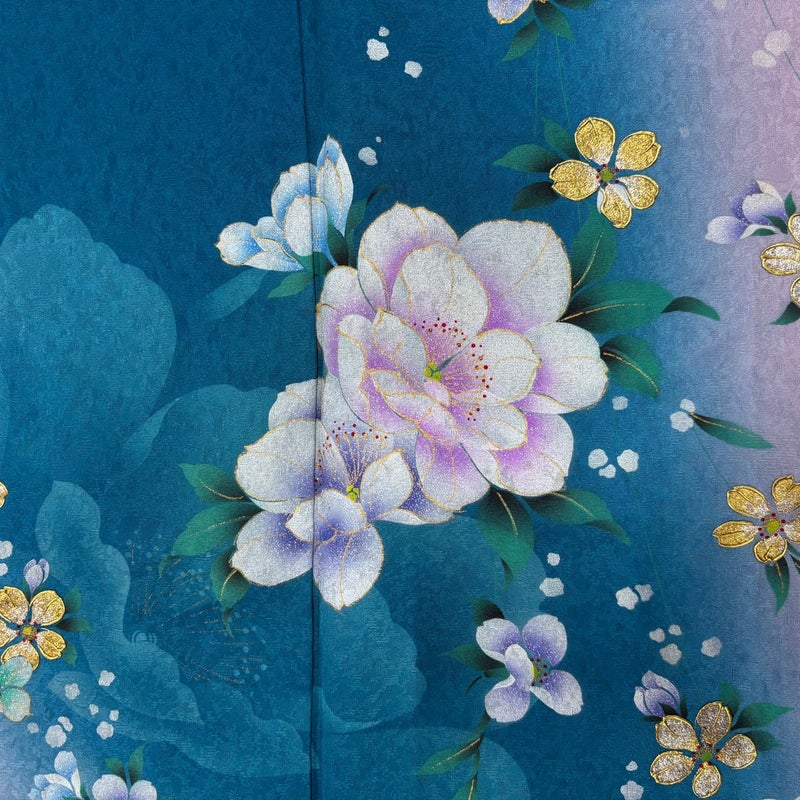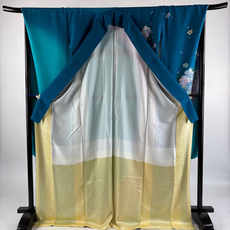 【振袖】 青系 青緑 秀品 C 約170cm~約179cm 裄丈69cm以上 (L)size 袖丈91cm以上 7990-9980 二万以下