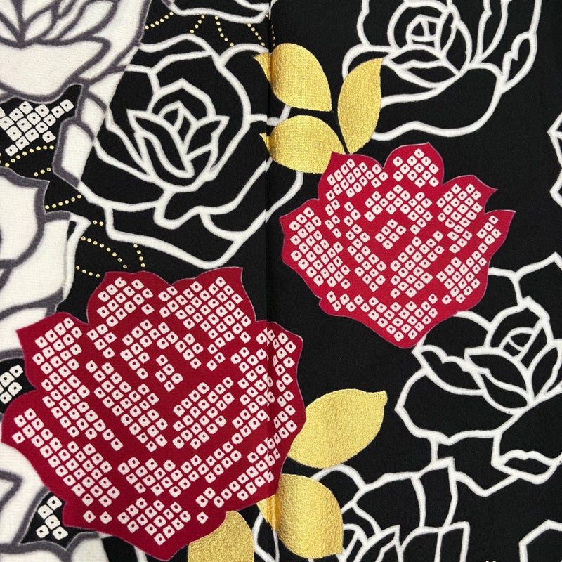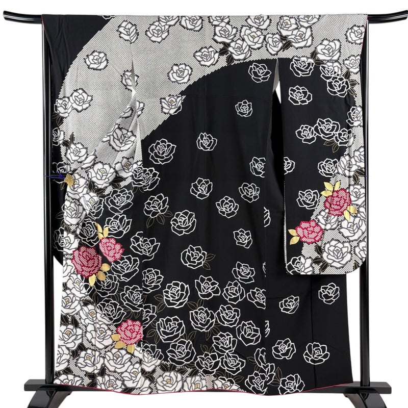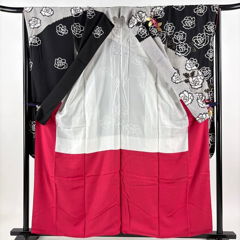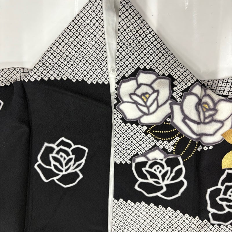 【振袖】 黒系 黒 名品 A 約150cm~約159cm 裄丈66cm (M)size 袖丈91cm以上 9990-29990 美品 二万以下