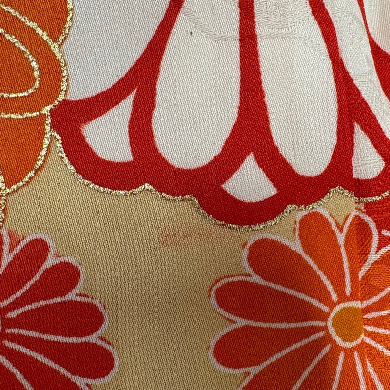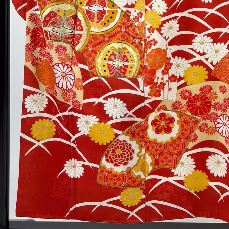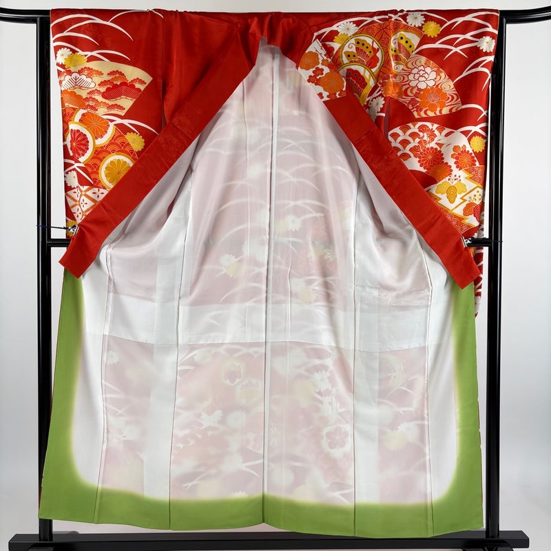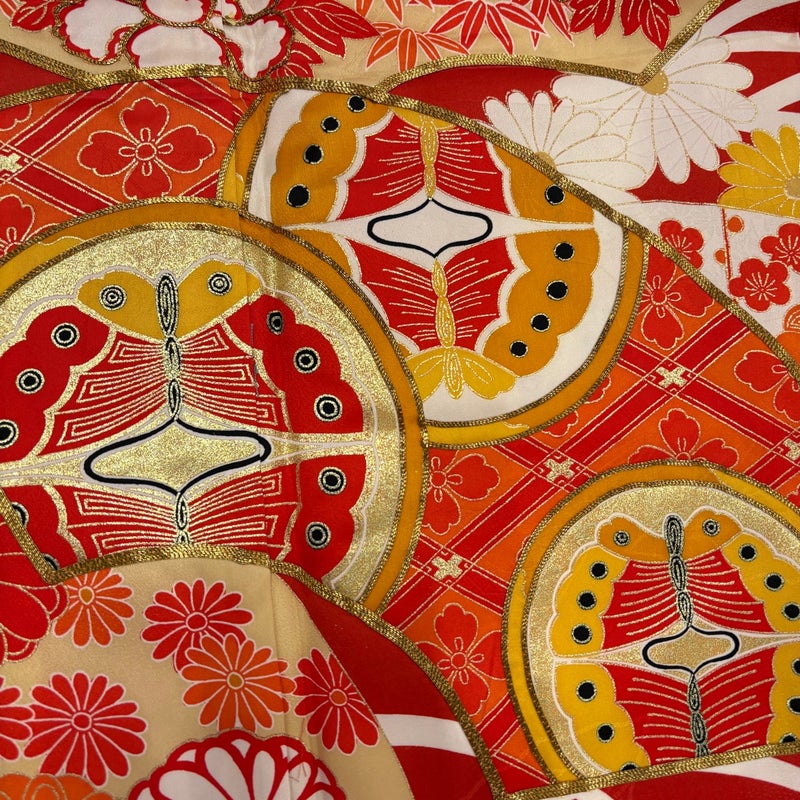 【振袖】 赤系 朱色 優品 B 約150cm~約159cm 裄丈63cm-64cm (M)size 袖丈91cm以上 4000-7980 二万以下