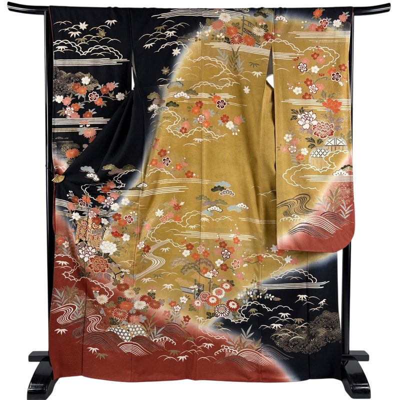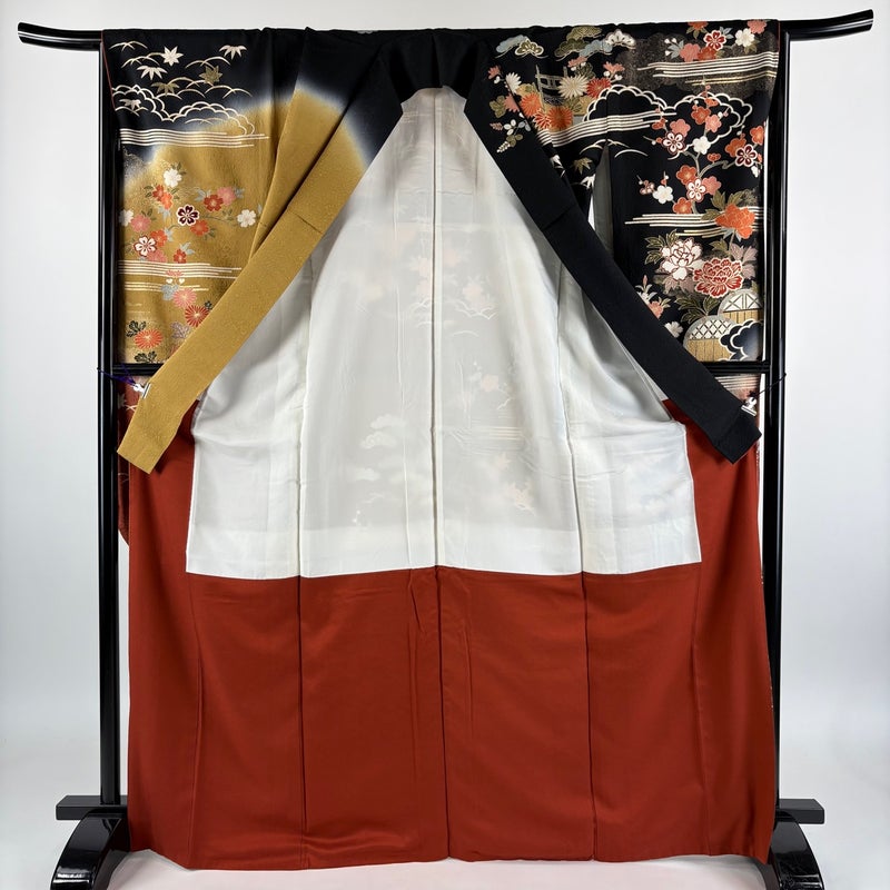 【振袖】 黒系 黒 名品 C 約160cm~約169cm 裄丈66cm (M)size 袖丈91cm以上 9990-29990 二万以下