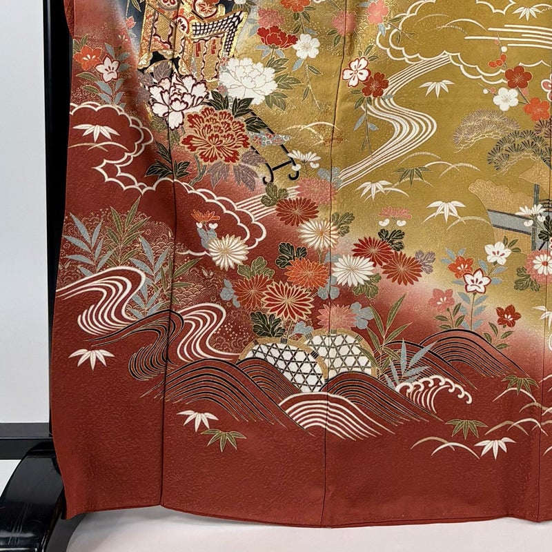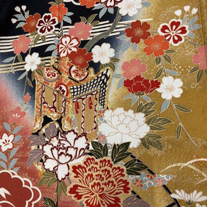 未婚女性の第一礼装としてお使いいただける振袖でございます。 お好みの帯や小物と合わせて晴れの日に相応しい華やかな装いにいかがでしょうか。 ※身丈・裄丈の縫込みの長さは測っておりません。 上前所々にシミ、衿周りや両袖口中に薄汚れ、後身頃の裾付近と袖付け全体にほつれ、右前袖に糸つれ、表地所々に金彩の剥がれ、表地所々に金彩の変色、右前袖付けに補修跡がございます。 胴裏所々にシミ、裏地両脇に薄い汗シミがございます。 ご購入の際はその点ご留意ください。 ※なお、厳しく商品の状態確認を行っておりますが、記載の汚れ以外にも見落とし箇所がある可能性がある旨ご了承いただけますと幸いです。 沢山の商品の中からご覧いただき誠にありがとうございます。