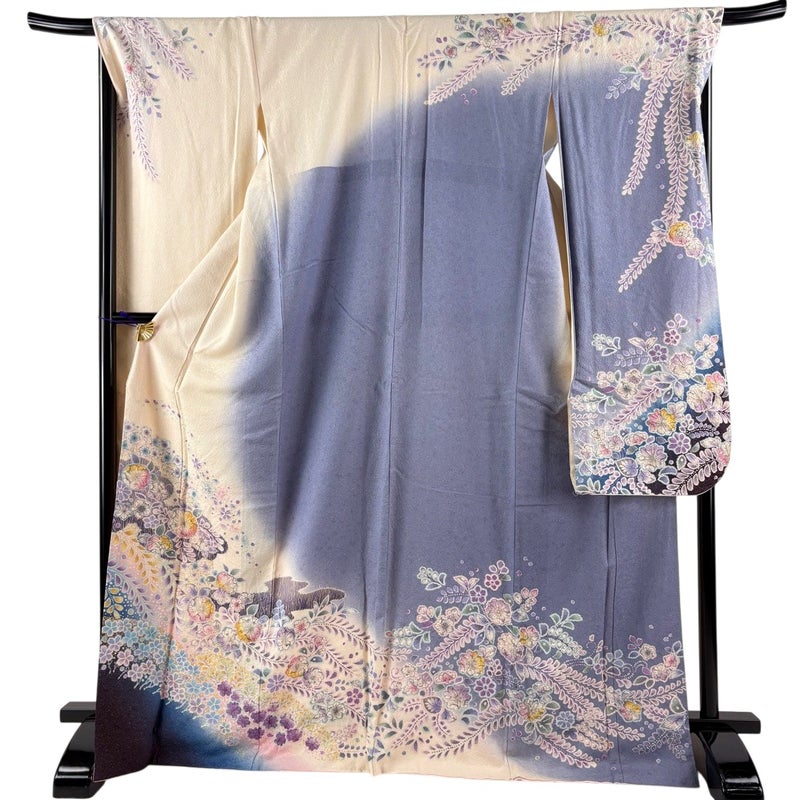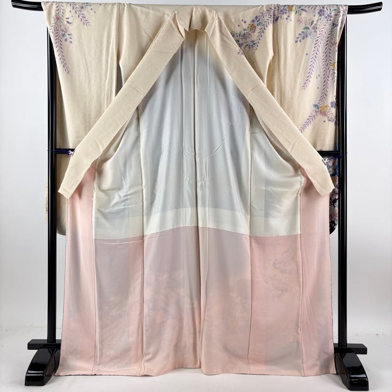【振袖】 白系 クリーム 名品 B 約170cm~約179cm 裄丈67cm-68cm (L)size 袖丈91cm以上 9990-29990 二万以下