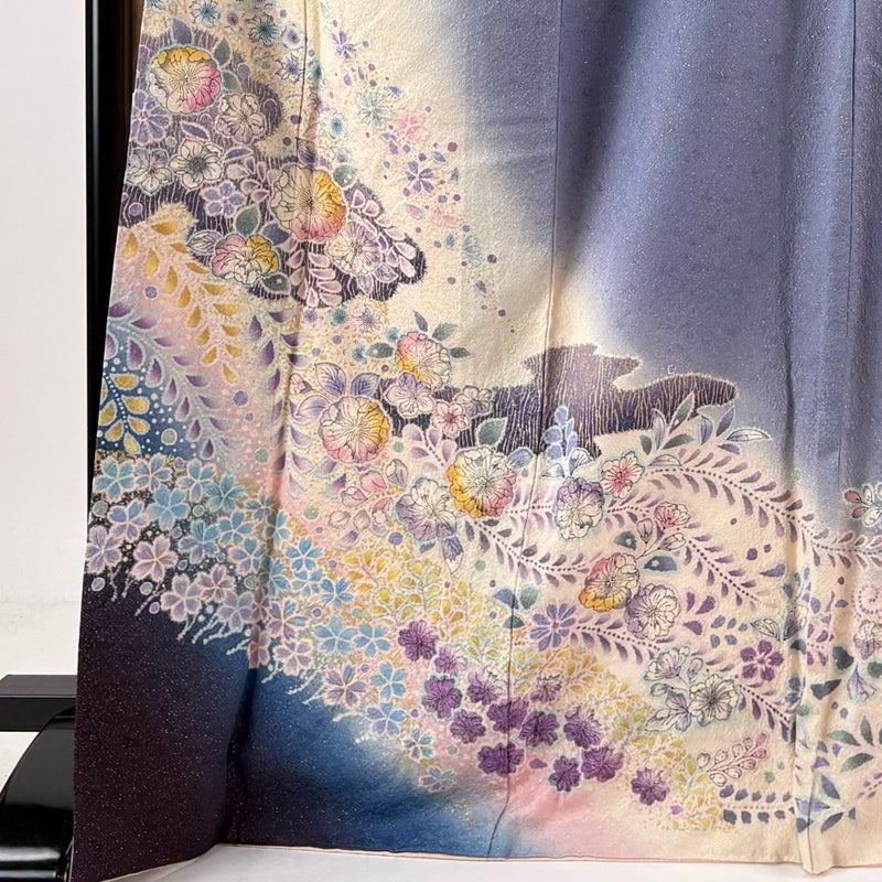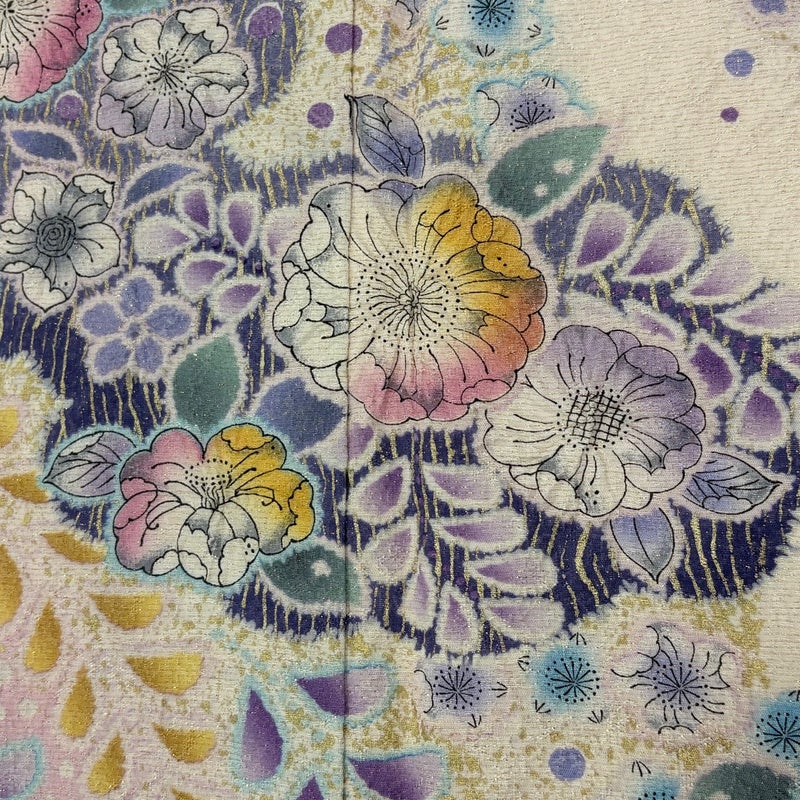 【着物ランク】名品 【素材】正絹 【身丈】約170cm 【裄丈】約68cm 【袖丈】約108cm 【袖幅】約35cm 【前幅】約24cm 【後幅】約30cm 【サイズ】L 【着物仕立て】袷 【着用時期】10~5月 【状態ランク】ランクB 【着物着用シーン】成人式、謝恩会