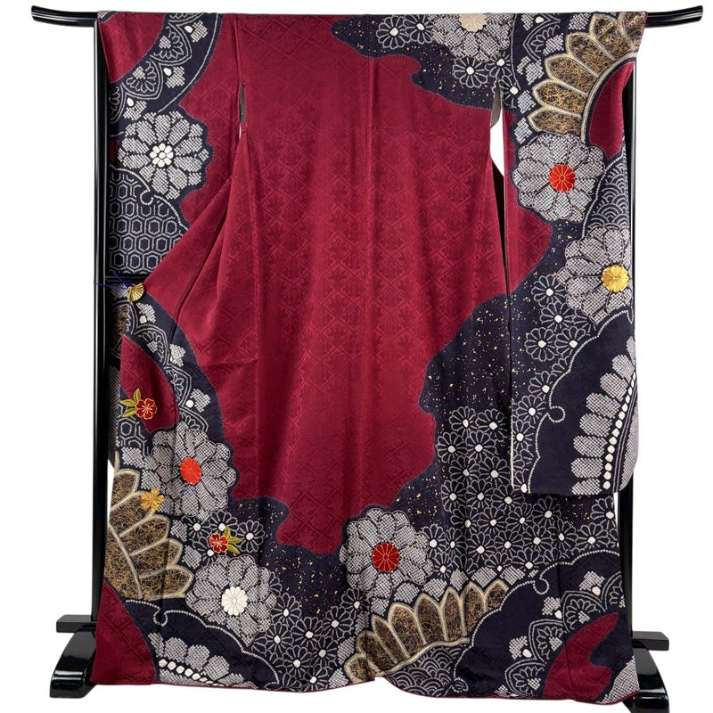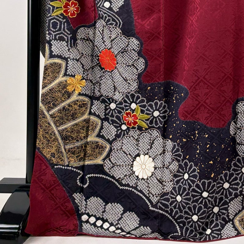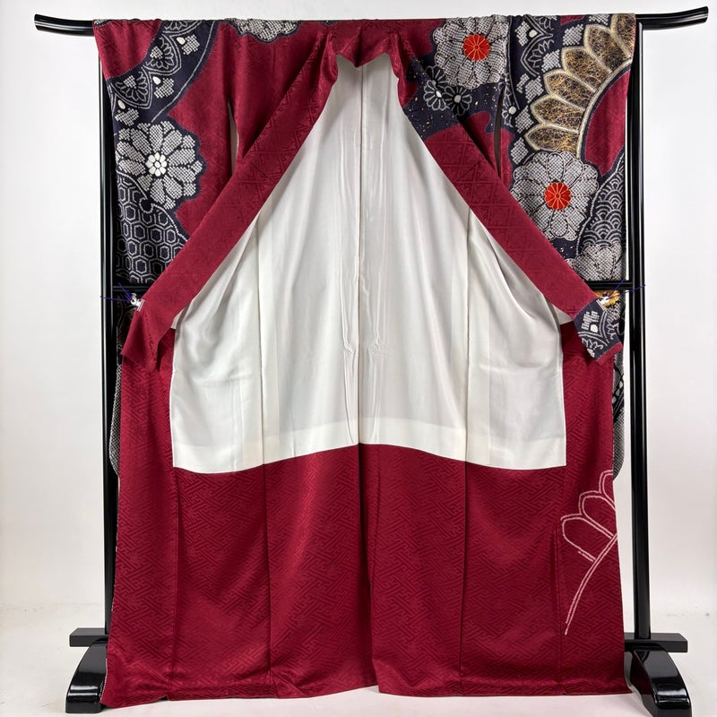 【振袖】 赤系 えんじ色 名品 A 約170cm~約179cm 裄丈67cm-68cm (L)size 袖丈91cm以上 9990-29990 美品 二万以下